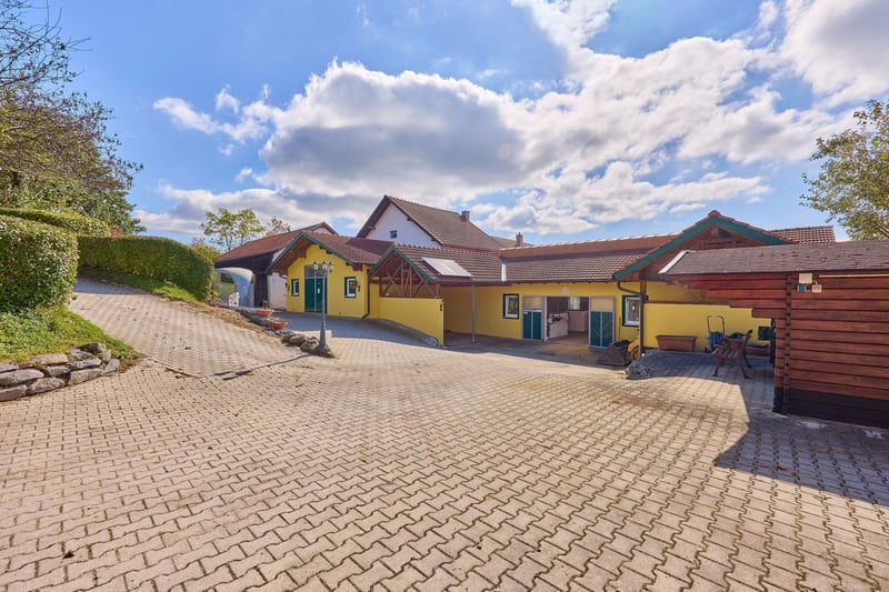 Reitanlage Landkreis Deggendorf – charmante Pferdeimmobilie mit schickem Wohnambiente! Objektbeschreibung: Dieses gemütliche Landhaus liegt in idyllischer Lage in Winzer, Landkreis Deggendorf, auf einem ca. 14.720 m² großen Grundstück zzgl. 1,8 ha Pachtflächen (seit 30 Jahren). Es verbindet bayerischen Landhauscharme mit einem modernen Maß an Komfort und ausgewählten luxuriösen Details – ideal für Pferdeliebhaber und Familien, die naturnahes Wohnen mit praktischer Funktionalität schätzen. Das Wohnhaus bietet ca. 140 m² Wohnfläche zuzüglich Nutzflächen wie Heizraum, Abstellflächen und einem teilweise unterkellerten Gewölbe-Weinkeller. Eine moderne Einbauküche aus 2021, Öl-Zentralheizung (Viessmann, 1994) kombiniert mit Holzofen, Warmwasser über Solarthermie (2004) und ein Kamin im Wohnzimmer sorgen für ein gemütliches Wohngefühl. Ein besonderes Highlight ist der Außenpool mit Wellness-Terrasse und Gartenhaus. Die Einliegerwohnung (ca. 75 m²) mit separatem Zugang sowie ein angrenzendes Büro (ca. 44 m²) im Obergeschoss bieten flexible Nutzungsmöglichkeiten für Gäste, Familie oder Homeoffice. Die gepflegte Reitanlage umfasst eine Stallgasse (2002) mit 7 Boxen, beheiztem Tränkensystem, Sattel- und Futterkammer, Waschplatz sowie angrenzenden Maschinenunterstand und Lagerflächen. Eine Reithalle (40 x 25 m, Baujahr 2004) mit Beregnungsanlage, ein Offenstall für 4 Pferde, eine Führmaschine und großzügige Koppelflächen direkt am Hof runden das Pferdeangebot ab. Weitere Gebäude wie eine Rundbogenhalle (2023) und die Scheune im Innenhof bieten zusätzlichen Lagerraum. Der gepflasterte Hof mit Toranlagen, PKW-Stellplätzen und gemütlicher Innenhofterrasse sorgt für ein harmonisches Gesamtbild. Dieses Anwesen verbindet komfortables Wohnen, charmantes Landhausambiente und funktionale Reitausstattung – ein Ort zum Wohlfühlen in Winzer, Landkreis Deggendorf. Ausstattung: Wohnhaus: - Baujahr: unbekannt (bestätigt durch Amt) - Wohnfläche: ca. 140 m² zzgl. Nutzflächen (Heizraum, Abstellflächen, Weinkeller etc.) - Moderne Einbauküche aus 2021 - Heizung: Öl (zzgl. Holz-Ofen) aus 1994 der Marke Viessmann, Warmwasseraufbereitung über Solarthermie aus 2004 (Pufferspeicher 2004) - Kamin im Wohnzimmer - Eigene Quelle - Außen-Schwimmbad mit Wellness-Terrasse und Gartenhaus - Schwimmbad Maße: 8 x 4 Meter aus dem Jahr 2010 - Fenster: Doppelverglasung, Holz aus ca. 1990 - Dämmungen: Zwischendecken - Einliegerwohnung und separates Büro vorhanden - Scheune und Parkplätze für PKWs im Innenhof - Hochwertige Tortechnik - Gemütliche Terrasse im Innenhof Einliegerwohnung & Büro: - Modernisiert: 2022 - Wohnfläche: ca. 75 m² + angrenzendes Büro 44 m² - Befindet sich im ersten OG und ist über eine Außentreppe zu begehen Stallungen: - Baujahr Stallgasse: 2002 - 7 Pferdeboxen, Maße 3 x 3,50 Meter - Beheizbares Tränkensystem - Angrenzender Maschinenunterstand und kleines Heulager (nutzbar als 2-4 weitere Boxen, Wasseranschluss vorhanden) - Sattelkammer und Futterkammer - Waschplatz - Angrenzend zum Pferdestall finden Sie eine Lagermöglichkeit für Kleingeräte, Quad, Kutsche, Fahrzeuge etc. Reithalle: - Baujahr: 2004 - Reitmaß: 40 x 25 Meter - Beregnungsanlage vorhanden - Boden: Sand-/Spänegemisch - Beleuchtet, Windschutznetze Führmaschine: - Baujahr: 2002 - Ausgelegt für 4 Pferde Offenstall: - Baujahr: 2003 - Ausgelegt für 4 Pferde - Selbsttränken vorhanden - eigene Sattelkammer vorhanden - Paddock mit Reitplatz Matten (90 m²) und Heuraufe Weiteres: - Koppeln direkt am Hof - Rundbogenhalle aus 2023 zur Heulagerung - Scheunengebäude im Innenhof (ehemals Stallungen, Ideal als Heulager) - Der Pferdebereich ist vollständig gepflastert und matschfrei zu begehen Lage: Die Gemeinde Winzer liegt im niederbayerischen Landkreis Deggendorf und überzeugt durch ihre verkehrsgünstige Lage inmitten einer landschaftlich reizvollen Umgebung. Dank der Nähe zur Bundesstraße B8 sowie zur Bundesautobahn A3 (Passau–Regensburg) ist Winzer hervorragend an das regionale und überregionale Verkehrsnetz angebunden. Über die Anschlussstellen Iggensbach und Deggendorf erreichen Sie schnell wichtige Verkehrsachsen in Richtung München, Regensburg und Passau. Der Flughafen München liegt rund 90 Autominuten entfernt. Für Pendler bietet die Lage somit eine ideale Kombination aus ländlicher Ruhe und optimaler Anbindung an Arbeits- und Bildungszentren in der Region. Die Gemeinde Winzer im Landkreis Deggendorf bietet eine ideale Kombination aus ländlicher Ruhe, familiärem Umfeld und guter Grundversorgung. Mit rund 3.500 Einwohnern verfügt der Ort über eine solide Infrastruktur, die den täglichen Bedarf bequem vor Ort abdeckt. Im Ortskern befinden sich Supermärkte, Bäckerei, Metzgerei, Bankfiliale, Friseur sowie kleinere Fachgeschäfte. Für größere Einkäufe oder Spezialsortimente bieten die nahegelegenen Städte Hengersberg und Deggendorf ein breites Angebot an Fachmärkten, Baumärkten und Einkaufszentren. Die medizinische Versorgung in und um Winzer ist sehr gut ausgebaut. Haus- und Zahnärzte, Apotheken sowie verschiedene Fachärzte sind in der Gemeinde und in den Nachbarorten vorhanden. Für eine umfassende medizinische Betreuung steht das Donau-Isar-Klinikum Deggendorf in kurzer Fahrdistanz zur Verfügung. Familien profitieren von einem umfangreichen Bildungsangebot. In Winzer selbst gibt es Kindergarten und Grundschule, weiterführende Schulen wie Mittelschule, Realschule und Gymnasium sind im nahen Hengersberg oder Deggendorf erreichbar. Schulbusse verkehren regelmäßig und sorgen für eine gute Erreichbarkeit. Neben einer soliden Infrastruktur überzeugt Winzer durch eine hohe Lebensqualität. Die Gemeinde liegt in einer reizvollen Landschaft nahe der Donau und bietet zahlreiche Freizeitmöglichkeiten – von Rad- und Wanderwegen über Sportvereine bis hin zu einem aktiven Gemeinschaftsleben mit traditionellen Festen und Veranstaltungen. Energieausweis: Wes