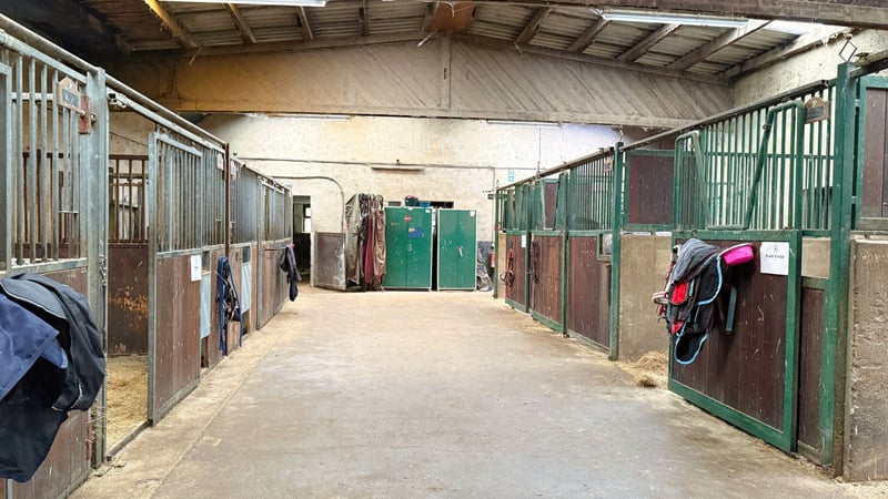 Property Description The property offered is a spacious former farmstead built in 1903, featuring extensive stables and outbuildings, as well as an indoor riding arena, all situated on a contiguous plot of approximately 4,260 m² in Linnich. The residential building, located at the street frontage, has a living area of about 160 m² spread over two floors, including a basement, and comprises a total of seven rooms. It is currently inhabited by the owners and, together with the rear farm buildings, forms a traditional courtyard with a classic rural character. The generously sized living room features a fireplace, creating a cozy living atmosphere and highlighting the rural charm of the house. Modernizations of the residential building: - Replacement of the gas heating system in 2021 - Installation of a welded wire fence in 2020 Equestrian Facilities & Stables The property offers a solid infrastructure for horsekeeping: - Indoor riding arena measuring approximately 20 x 40 meters - Outdoor riding arena approximately 30 x 50 meters (leased) - About 25 horse stalls/stable places - Several stable sections - Open stable areas - Turnout and outdoor paddocks - Paved courtyard areas Additionally, there are a workshop, garages, and ample parking spaces available. Flexible Usage & Rental Potential Depending on the concept, there are options to: - Rent out the main house separately, - Rent the horse stalls (up to 25 options) individually or as a whole, - Or combine residential living with a horse operation economically. This creates, beyond personal use, attractive income potential in the area of boarding horses or residential rentals (subject to official permits and individual contractual arrangements). Land & Lease Areas The freehold property covers approximately 4,260 m² and forms a contiguous courtyard and utility area. Furthermore, around 4 hectares of meadows directly adjacent to the farm are leased. The transfer or continuation of the lease agreement will be arranged with the respective lessor. The immediately neighboring meadow areas provide ideal conditions for close-to-field, species-appropriate horsekeeping with short travel distances. Condition & Development Potential The buildings are generally in a condition appropriate for their age. Modernization and, if necessary, renovation measures are required depending on the planned use. Particularly for commercial use or operational development, investments should be considered in the following areas: - Energy optimization of the residential building - Modernization of stable and hall technology - Adaptation of the riding facilities to current standards - Building law review for change of use The estate thus offers interesting and versatile development potential for both self-users and investors. The information contained in this exposé is based on details provided by the owner. It serves solely for non-binding preliminary information and does not constitute a legally binding basis. No guarantee is given for the accuracy, completeness, or timeliness of the information. The offered property is subject to a commission of 3.57% of the purchase price, including VAT, payable by the buyer.