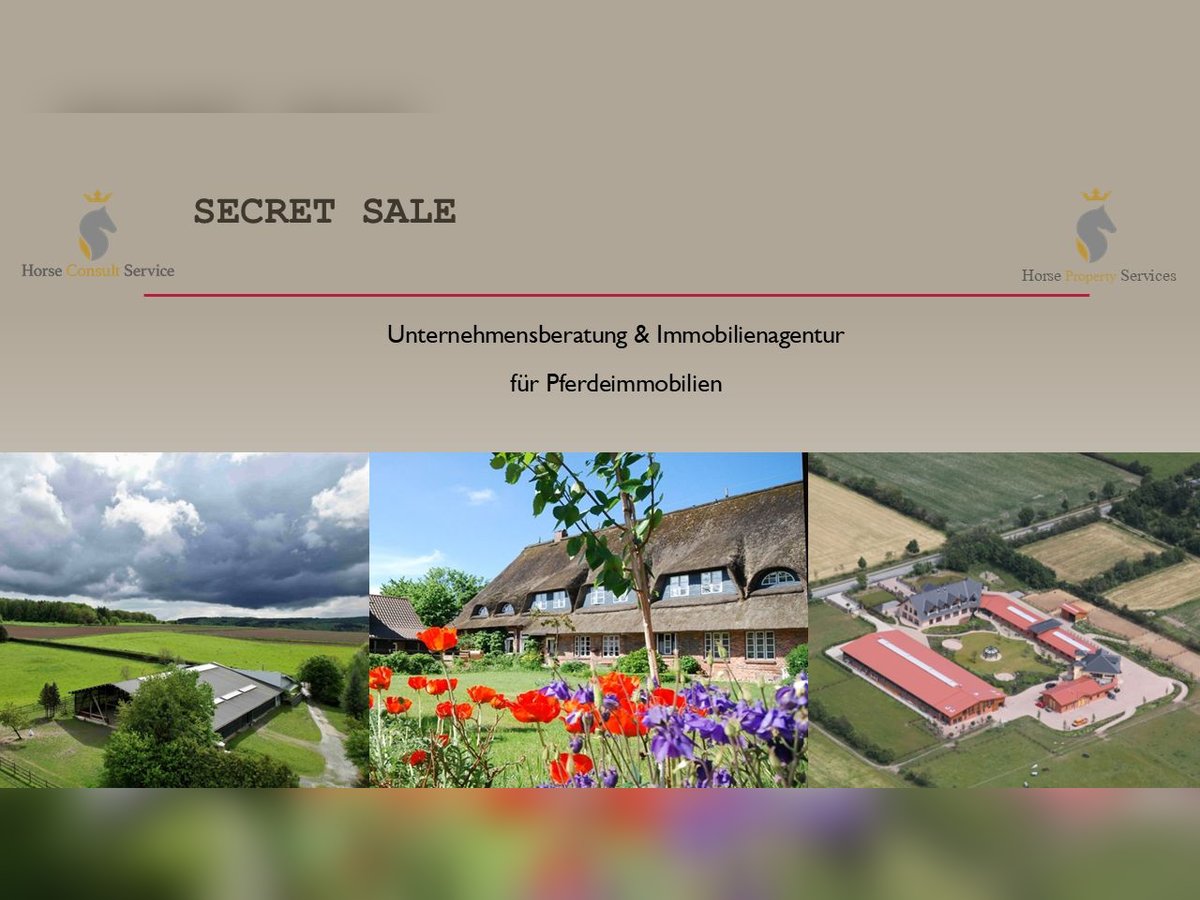 Hochwertige, modern ausgestattete Hofanlage in absoluter Alleinlage im Umfeld von Hamburg. Inmitten der weitläufigen Natur des nördlichen Hamburger Umlands, eingebettet in eine ruhige Alleinlage direkt am Naturschutzgebiet, eröffnet sich eine Reitanlage, die in dieser Form nur selten auf den Markt kommt. Der Hof vereint professionelle Reitinfrastruktur mit modernem Wohnkomfort und einem außergewöhnlichen Maß an Privatsphäre - ein Rückzugsort und zugleich ein voll ausgestatteter Standort für anspruchsvolle Pferdehaltung. Das Anwesen umfasst ca. 15 ha arrondierte Fläche sowie ein energieeffizientes Wohnhaus (KfW-Standard) mit ca. 190 m² Wohnfläche und zusätzlicher Einliegerwohnung. Die Infrastruktur ist vollständig und professionell ausgebaut: •Reithalle •Außenreitplatz drainiert und beleuchtet •Boxenanlage mit über 25 Pferdeboxen •zusätzliche Außenboxen und Paddocks •Maschinenhalle mit integrierter Wohneinheit Ergänzt wird das Objekt durch weitläufige Weideflächen sowie moderne technische Ausstattung inkl. Glasfaser und nachhaltiger Energieversorgung. Eine seltene Kombination aus Größe, Qualität und Entwicklungspotenzial - ideal für professionelle Nutzung oder anspruchsvolle private Konzepte. Weitere Informationen ausschließlich auf Anfrage. Dieses Anwesen wird nur im Secret Sale angeboten – Diskretion und Exklusivität stehen im Vordergrund. Ernsthafte Interessenten erhalten weitere Unterlagen und Detailinformationen nach persönlicher Kontaktaufnahme mit kompletter Postanschrift. Vertrauliche Informationen auf Anfrage – Besichtigung gegen Bonitätsnachweis. Achtung: die Immobilie befindet sich nicht in Nahe, sondern im geographischen Umfeld davon.