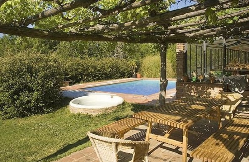 At the hearth of Sierra de Aracena Natural Park is this farm 13 hectares. rearing livestock and farmining. The cottage, ancient retrear of ecclesiastical the beginning of s.XVI, has been restored. The cottage is a large building of over 400m with stone walls 80 to 100cm thick and consists of two floors, courtyard and stables. This building is divided into two big houses. Upstairs there are five bedrooms, two bathrooms, kitchen and living room terrace. Downtairs there is another house with several bedrooms, bathroom, living room, terrace, etc. The rest of the house is part of the maintenance, old stable, and storage area. The whole houses are well furnished, has central heating with biomass. Outside we have a large garden with lawn, swimming pool, sand pit, emparrada terrace, pond, barbecue and an old greenhouse for cold or rainy days. In the parking lot there is room for four cars indoors. This property has many and differents possbilities, it might be a perfect place to build a hotel, or equestrian centre, perfect place for vacations. It is located one hour distance from Sevilla, 500 metres from the road. More information send us a private message.