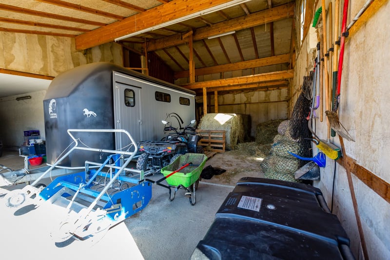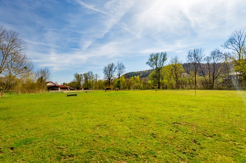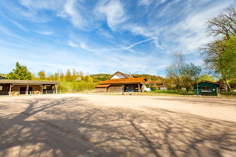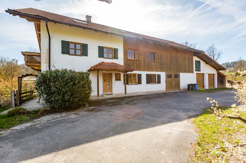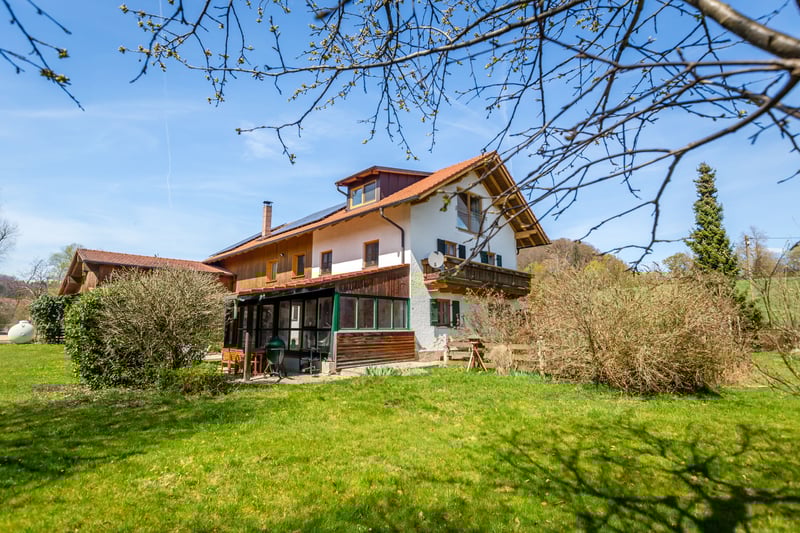 Move in, settle in, and start riding This beautifully situated estate with special charm is located on the outskirts of a village and is already ideally equipped for horsekeeping. In addition, it is excellent for self-sufficient living, freelancers, small businesses—or simply as an exceptional family home in the countryside. Located directly on the border to Upper Bavaria and connected to the A94, Munich can be reached in about an hour. Brief Description: - Idyllic outdoor location on the Türkenbach river with mature deciduous trees - Only one neighboring property - Approximately 11,006 m² of flat, well-shaped land - Fully fenced horse area with paved paddock, pastures, trail, and stables - Riding arena 20 × 40 m with high-quality riding sand, irrigation, and floodlighting - Municipal road adjacent to the property; B20 about 100 meters line-of-sight (situated higher, barely audible) - Residential house built in solid construction (original foundation circa 1955), continuously modernized and expanded - Extensive renovations (including roof and attic expansion, windows, front door, bathrooms, small sewage treatment plant) - No renovation backlog; key living areas modernized - Combination of solid exterior walls (up to approx. 48 cm) and modern timber frame construction - Parquet, plank, tile, and laminate flooring - Central liquid gas heating, underfloor heating in kitchen, dining room, and bathrooms - Tiled stove with oven and baking chamber (independently operable) as well as an additional wood stove - Public water connection and private small sewage treatment plant - Large storage area with expansion potential Layout of the Residential House: - Ground Floor: spacious living room, open new kitchen with dining area, new bathroom with walk-in shower, winter garden (unheated), covered terrace - Upper Floor: four rooms, small bathroom with bathtub and toilet - Attic: newly expanded studio 1; studio 2 prepared for expansion - Basement: storage and heating room (partially cellar) Outbuildings and Outdoor Facilities: - Spacious workshop (~48 m²), currently used as a saddle room - Two garages, one with electric roller door and e-charging station - Insulated barn/storage hall (~55 m²) for hay, straw, and horse trailer - Additional storage spaces - Equestrian lounge with view of the riding arena - Rustic hunting lodge with cellar - Shelters, fenced flower garden, pond, fire pit, fruit trees - Liquid gas tank Photovoltaic System: - 9.9 kWp PV system with 19.5 kWh battery storage (built in 2019) - Wallbox for electric vehicle charging Special Information on Horsekeeping: The developed horse area provides space for about four horses in paddock boxes or open stable management. The area was designed with expertise and attention to detail, offering optimal conditions for species-appropriate, year-round horsekeeping. - Direct access from boxes to paddock and pastures, optionally via trail - Newly fenced and Shetland-safe - Stable building with concrete floor, forest bedding, paddock plates/rubber mats - Paved, drained paddock (no mud) - Frost-proof, heated drinking trough - Covered grooming area, washing area, and concrete manure pad - Professionally built riding arena with surface drainage, specialized riding sand with irrigation, and floodlight mast for excellent training conditions - Direct access to extensive riding terrain, rides up to the Inn possible - Several riding clubs within 10–20 minutes - Equestrian lounge - Barn with ample space for hay, straw, horse trailer, and riding arena planner - Reliable hay/straw suppliers and manure pick-up service available Note on the Location Near the Creek: Although the estate is situated directly on the Türkenbach, the creek runs several meters below the property. Therefore, the estate was unaffected during the flood in 2016 and the flooding in 2024. Energy Certificate: Consumption-based energy certificate, valid until 03.04.2032 Main energy sources: liquid gas and firewood Built in 1955 Energy class G About the Area: Untertürken is a rural village in the Bavarian municipality of Zeilarn. Shopping options are available in Stammham (about 3 km, village shop, butcher), as well as in Marktl (about 5 km) and Tann (about 7 km) with supermarkets, discount stores, bakeries, butchers, pharmacies, doctors, banks, etc. The surroundings offer diverse sports and leisure activities (e.g., hiking trails, cycling routes, lakes, golf courses, thermal spas, etc.) Distances from Untertürken: - Simbach/Inn approx. 12 km - Braunau/Austria approx. 15 km - Burghausen approx. 15 km - Eggenfelden approx. 20 km - District town Pfarrkirchen approx. 23 km - Mühldorf approx. 34 km - Bad Füssing approx. 38 km - Bad Griesbach (golf and thermal spas) approx. 40 km - Passau approx. 63 km - Chiemsee approx. 65 km - Salzburg approx. 75 km - Munich Airport approx. 104 km - Munich approx. 110 km Via the A94 (Marktl exit, approx. 8 km), Munich is accessible in about an hour. Additionally, there is a very good direct train connection from Marktl station (about 5 km) to Munich—ideal for commuters. The current owners work in Munich themselves and commute several times a week.