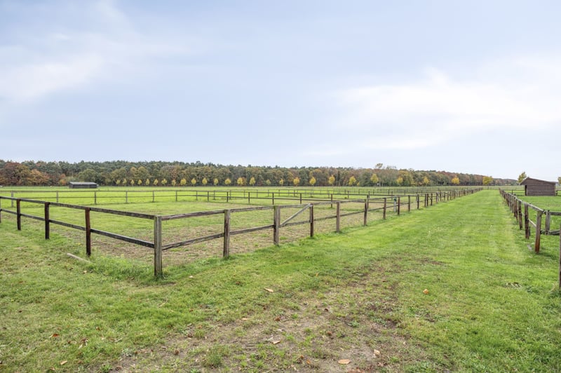 Terreno de aproximadamente 3 hectáreas (se ha arrendado cerca de 3 hectáreas adicionales). Superficie habitable de aproximadamente 2.000 m³, unos 500 m². Año de construcción: circa 1990. Certificado de eficiencia energética: sí. Calefacción: gas. Esta instalación ecuestre no solo es ideal para el deporte profesional, sino también para los amantes de los caballos que buscan un hogar privado. La propiedad cuenta con una espaciosa casa de campo, 20 boxes (ampliables hasta 30), una pista cubierta (aproximadamente 70 x 25 metros) con acogedores salones, una pista de doma, una pista de entrenamiento, alojamiento para el personal, así como varios paddocks y praderas. La vivienda principal ofrece espacios de vida confortables y está construida con materiales de alta calidad. La propiedad se encuentra en un hermoso bosque cercano a la frontera con Alemania. El aeropuerto internacional de Düsseldorf y el Centro Ecuestre De Peelberg están a unos 30 minutos en coche. Un parque nacional está en las inmediaciones y la finca es accesible por varias vías de entrada. Resumen: Casa de campo: Planta baja: vestíbulo, trastero, aseo, salón, comedor, piscina, cocina, dormitorio, baño; Primer piso: 4 dormitorios, 2 baños, trastero; Sótano: almacén. Alojamiento para el personal: El apartamento para el personal cuenta con salón, cocina semiabierta, dos dormitorios, un baño y un aseo. Caballos: Pista cubierta de aproximadamente 25 x 75 metros (techo aislado), 20 boxes para caballos (ampliables), pista de doma de aproximadamente 21 x 61 metros, pista de entrenamiento con sistema de paseos (para 8 caballos) y paddock, área de lavado, área de cepillado con solárium, varias dependencias de almacenamiento, baños, apartamento con 2 dormitorios, paddocks y praderas con establos, sala social con gastronomía. Se cuenta con una autorización ambiental para la crianza de hasta 30 caballos. Video: https://www.youtube.com/watch?v=NNanHDJWowE El agente inmobiliario señala que la información del inmueble proporcionada proviene del vendedor o de terceros y no ha sido verificada por él en cuanto a su exactitud o integridad. Es responsabilidad del cliente comprobar la veracidad y completitud de estos datos. El agente, que solo transmite esta información, no asume ninguna responsabilidad por su exactitud.