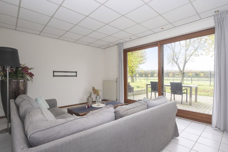 Property approximately 3 ha. (approximately 6 ha. have been leased additionally) Country house living area approximately 2000 m³ Year of construction approximately 1990 Energy certificate: yes Heating: gas This equestrian facility is not only ideal for professional equestrian sports but also for private horse lovers. The property features a spacious country house, 16 stalls, an indoor riding arena (approximately 70 x 25 meters) with a cozy lounge, an outdoor riding arena, a lungeing area, staff accommodation, as well as various paddocks and pastures. The main house offers pleasant living spaces and is built from high-quality materials. The property is located in a beautiful forest area near the border with Germany. Düsseldorf International Airport & Equestrian Centre De Peelberg can be reached in approximately 30 minutes by car. A national park is in close proximity, and the property is easily accessible via various access roads. Overview: Country house: Ground floor: hallway, storage room, toilet, living room, dining room, lounge with swimming pool (covered), kitchen, bedroom, bathroom; 1st floor: 4 bedrooms, 2 bathrooms, storage room; Basement: storage room. Staff accommodation: The staff apartment includes a living room, semi-open kitchen, two bedrooms, a bathroom, and a toilet. Horses: Indoor riding arena approximately 25 x 75 meters (roof insulated) - 16 horse stalls - outdoor riding arena approximately 21 x 61 meters - lungeing area (8 horses) with lungeing ring - wash area - grooming area with solarium - various storage rooms - various toilet facilities - apartment with 2 bedrooms - paddocks and pastures with stable - club room with catering An environmental permit for keeping 44 adult horses is available. The broker points out that the property information provided by him comes from the seller or a third party and has not been verified by him, the broker, for its accuracy or completeness. It is the responsibility of the client to verify the accuracy and completeness of this information. The broker, who merely passes on this information, assumes no liability for its accuracy.