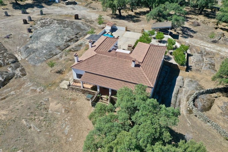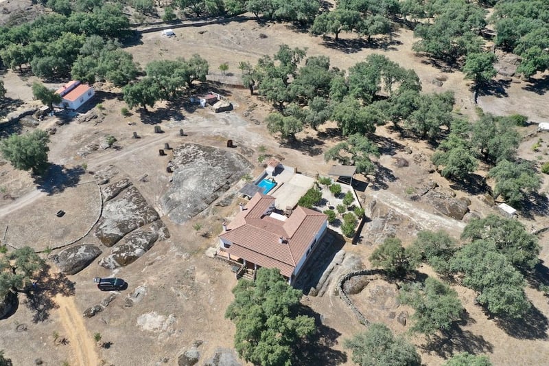 Prezentujemy niezwykły, w pełni wyposażony wiejski dom, 500 m od centrum wsi, ale jednocześnie całkowicie odizolowany od innych domów, idealny do życia w ciszy na wsi, ale z usługami wsi w odległości spaceru. Nieruchomość posiada główny dom z 3 przestronnymi sypialniami, każda z łazienką, duży salon z kominkiem, wyposażony w wysokiej jakości drewniane meble, jak widać na zdjęciach. Rustykalna kuchnia z piecem opalanym drewnem i ceramiczną płytą grzejną. Ogrzewanie za pomocą kotła gazowego. Wszystkie drzwi i okna są również wykonane z drewna pierwszej jakości, metalowe okiennice, które zapewniają dodatkowe bezpieczeństwo domu. Posiada garaż, basen z podświetlanym wodospadem, frontowe patio z tarasem z natryskami wodnymi na lato i fantastyczny ogród. Położony w środku pięknego gaju dębu korkowego, 3 hektary ziemi, sad z różnymi drzewami owocowymi i studnią artezyjską. Różne działki do oddzielenia wszelkiego rodzaju zwierząt, koni, owiec ... Szopy dla zwierząt i w pełni wyposażona kurnik o powierzchni 600 metrów kwadratowych. Różne szopy magazynowe. Dom usługowy z salonem, kuchnią, sypialniami i poddaszem w pełni wyposażonym. 70 metrów podłogi plus 35 metrów poddasza.