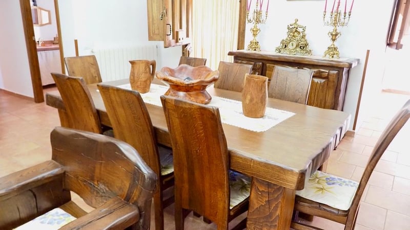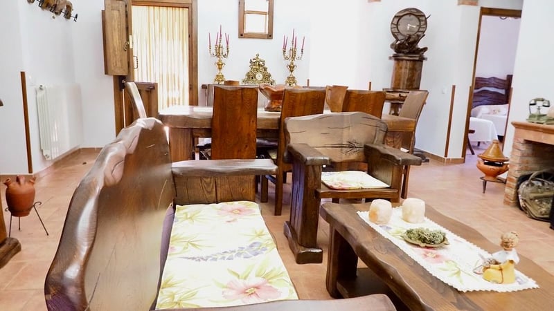Nous vous présentons une maison de campagne exceptionnelle, entièrement équipée, située à 500 mètres du centre du village, tout en étant totalement isolée des autres habitations. Idéale pour vivre dans la tranquillité de la campagne, tout en bénéficiant des services du village accessibles à pied. La propriété comprend une maison principale avec trois chambres spacieuses, chacune avec salle de bain attenante, un grand salon avec cheminée, meublé de mobilier en bois de haute qualité comme le montrent les photos. Cuisine rustique avec poêle à bois et plaque en céramique. Chauffage par chaudière au fioul. Toutes les portes et fenêtres sont également en bois de première qualité, avec des volets métalliques offrant une sécurité supplémentaire à la maison. Elle dispose d’un garage, d’une piscine avec cascade éclairée, d’une terrasse à l’avant avec un deck équipé de jets d’eau pour l’été, ainsi que d’un jardin magnifique. Nichée au cœur d’un beau chêne-liège, la propriété s’étend sur 3 hectares de terrain, comprenant un verger avec différents arbres fruitiers et un puits artésien. Plusieurs parcelles séparées pour accueillir tout type d’animaux, chevaux, moutons… Écuries pour animaux et poulailler entièrement équipé d’une superficie de 600 mètres carrés. Différents abris de stockage. Une maison de service avec salon, cuisine, chambres et grenier entièrement aménagé. 70 mètres carrés de surface au sol, plus 35 mètres carrés de grenier.
