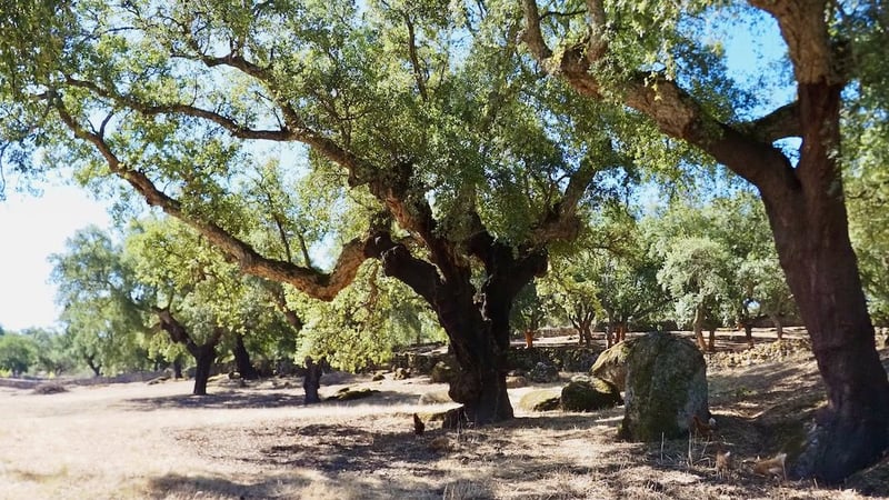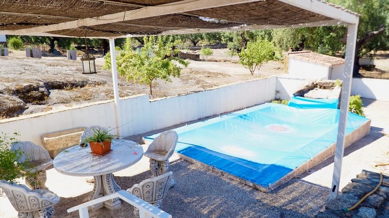 We present an extraordinary fully equipped country house, 500 m from the centre of the village, but at the same time, completely isolated from other houses, ideal to live in the tranquillity of the countryside but with the services of the village within walking distance. The property has a main house with 3 spacious bedrooms each with en-suite bathroom, a large living room with fireplace, furnished with high quality wooden furniture as can be seen in the pictures. Rustic kitchen with wood burning stove and ceramic hob. Heating by gasoil boiler. All the doors and windows are also of first quality wood, metal shutters that give an extra security to the house. It has a garage, swimming pool with illuminated waterfall, a front patio with a deck with water sprays for the summer, and a fantastic garden. Nestled in the middle of a beautiful cork oak grove, 3 hectares of land, orchard with different fruit trees and artesian well. Different plots to separate any kind of animals, horses, sheep ... Sheds for animals and a fully equipped chicken coop of 600 square metres. Different storage sheds. Service house with living room, kitchen, bedrooms and attic fully equipped. 70 metres of floor, plus 35 metres of attic.