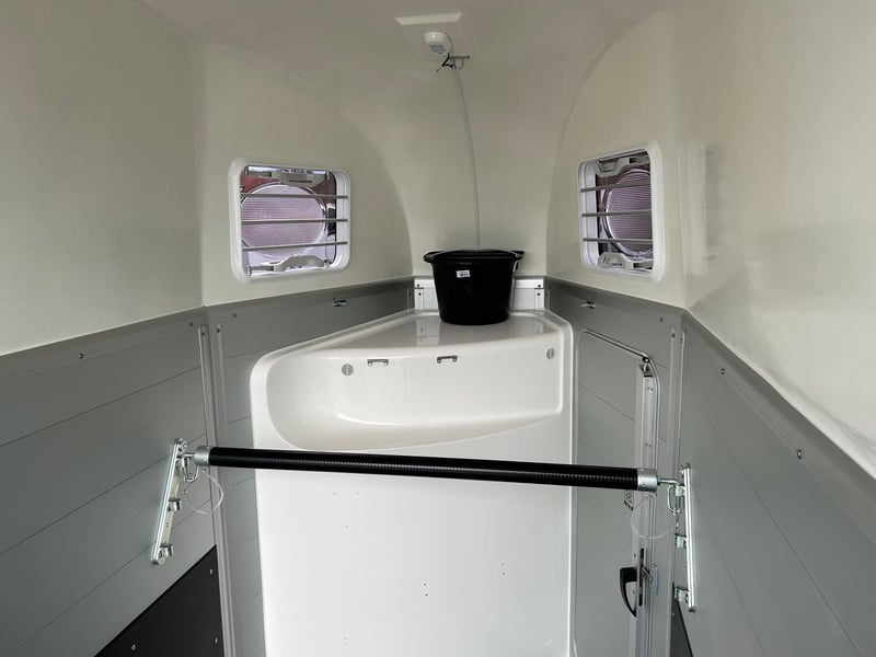 Humbaur Singolo Alu 1600 Rimorchio per cavalli Rimorchio per auto Età: Nuovo (anno di produzione: 2024) 2 anni di ispezione generale dalla data della prima immatricolazione Documenti di immatricolazione inclusi (libretto di circolazione / libretto di circolazione parte 2 e COC) Disponibile da: Immediatamente (in magazzino)! Possibilità di finanziamento tramite le nostre banche partner! Dati tecnici Peso totale ammesso: 1.600 kg Peso a vuoto: circa 690 kg Carico utile: circa 910 kg Numero di assi: 2 Lunghezza del vano di carico: 3.222 mm Larghezza vano di carico: 1.302 mm Altezza vano di carico: 2.310 mm Tipo di freno: frenato, freno di emergenza Telaio: a caricamento ribassato (ruote accanto al corpo), assali con sospensione in gomma Elettricità: 12V, spina a 13 poli Dimensione pneumatici: 175/70 R13 Equipaggiamento speciale Marcia EquiDrive® con ammortizzatori sulle ruote (omologazione 100 km/h) Sportello antitraccia con striscia di gomma Locale di selleria singolo in alluminio con serratura e porta sella, porta briglie, specchio e rete Equipaggiamento standard Protezione del gradino laterale Pavimento in alluminio BiComp 21 mm (senza legno - imputrescibile) Pavimento in gomma di 8 mm di spessore Corpo in profili di alluminio anodizzato a doppia parete Supporto posteriore con illuminazione Porta di accesso con sistema di chiusura a 3 punti Barre pettorali e posteriori divisibili e regolabili in altezza con sblocco antipanico Finestre incernierate oscurate nel cofano in polietilene Cofano in polietilene nero metallizzato Illuminazione interna Anello per rete da fieno Deflettore del vento Volante automatico Telaio zincato Timone a V Assali e sistema frenante AL-KO o Knott Accessori (soggetti a sovrapprezzo) Locale singolo in alluminio con serratura e porta sella, porta briglie, specchio e rete Cerchi in alluminio argento/nero Porta-sella per 2 selle (esterno) Portasella girevole per 1 sella (esterno) Lucernario Sistema di sicurezza per il trasporto EquiGuard Griglia per puledri Portellone posteriore con pedana in gomma Porta posteriore girevole e orientabile Divisorio centrale per singolo Protezione in gomma per i gradini della sala macchine Imbottitura laterale destra e sinistra Telo in PVC al posto del paravento Tappeto di usura anteriore Tappeto di usura posteriore Blocco del rimorchio Ruota di scorta 175/70 R13 incl. supporto per ruota di scorta Consegna del veicolo in tutta la Germania Immatricolazione in tutta la Germania Targa di trasferimento (valida per 5 giorni) Nota bene Le specifiche di peso possono variare a seconda dell'equipaggiamento; errori, vendita anticipata e modifiche riservate!