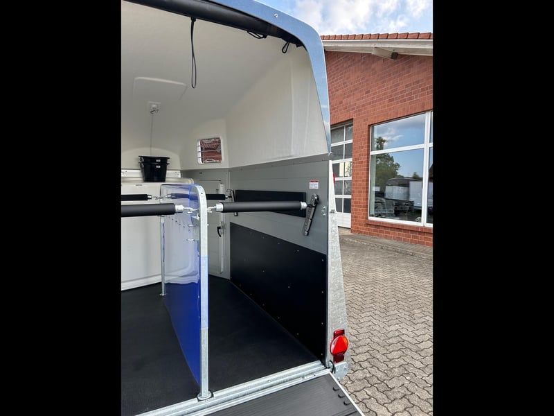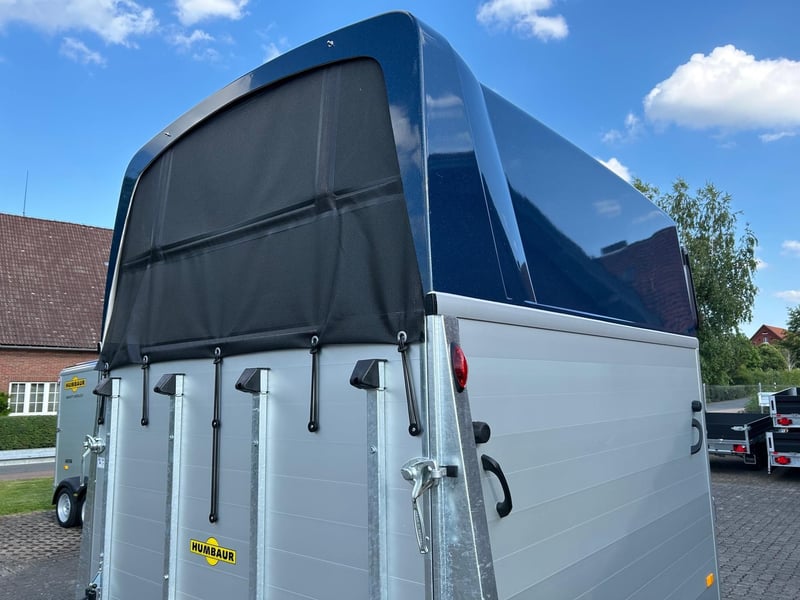 Humbaur Pferdeanhänger Xanthos Aero 2400 2,4t Sattelkammer 100km/h Hecktür Blue Hecktür schwenkbar
