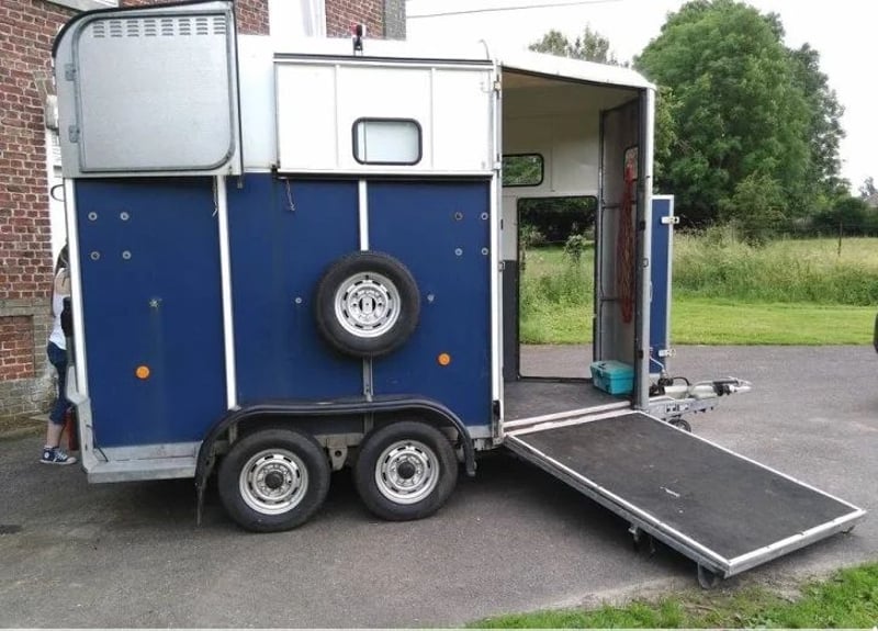 Ifor Williams HB 506 année 2014 PTAC : 2600 kg (détarable jusqu’à 1400 kg); Poids à vide : 820 kg;; Séparation de tête, rail à foin, pont avant, pont porte arrière; Plancher ALUMINIUM