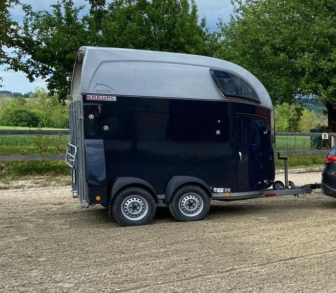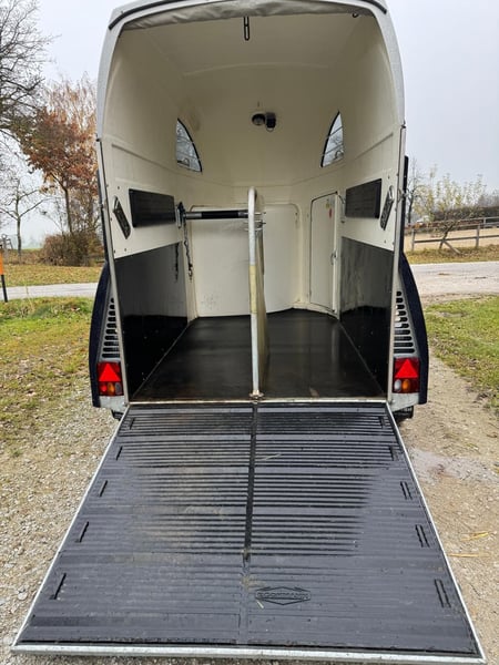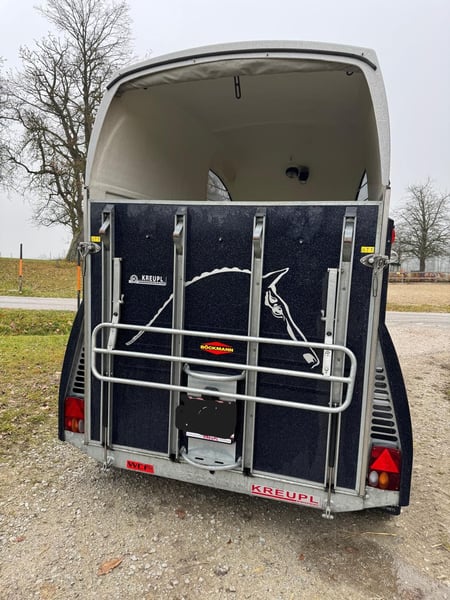 Böckmann Master WCF Fahrwerk, sehr guter Zustand garagengepflegt, Baujahr 2015, 2024 neu bereift, Sicherheitsboxenstangensystem höhenverstellbar, Sattelkammer mit 2 ausziehbare Sattelhalter, Seitenpolsterung, Aluboden, Seitenstrebenabdeckung, Seitl. Trittschutz, Einzelrad-Kunstoffkotflügel, kalppbares Fohlengitter auf Rückwand, zustäzliche durchgehende Boxenstange