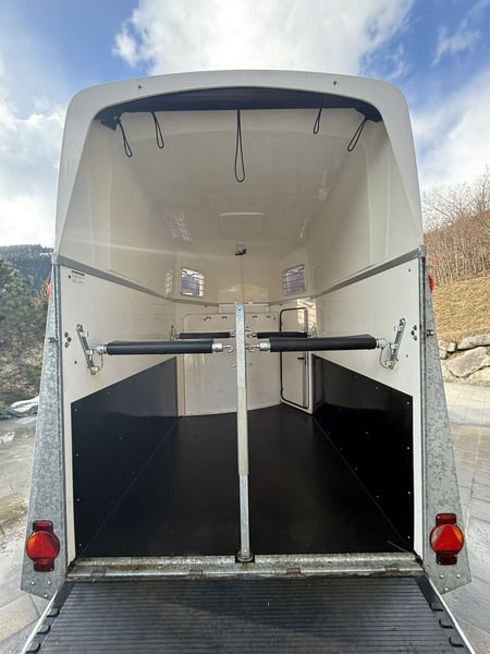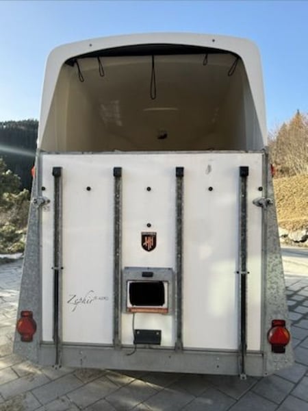 Verkaufe schönen und gepflegten Pferdeanhänger von Humbaur Modell: Zephir AERO Voll-Polyseitenwände, AERO-dynamischer Bug AluBiComp Boden, darauf Gummiboden 8mm eingeklebt und versiegelt Sattelkammer mit Sattelhalter, Trensenhalter, Spiegel, Staunetz, Schaufel und Besen Windschott Seitentrittschutz gepolsterte Brust- und Heckstangen mit Panikentriegelung, höhen- und längenverstellbar Innenbeleuchtung Kamera im Inneren des Hängers Nutzlast 1478 kg Gesamtgewicht 2400 kg EZ 08/2017 Pickerl bis 08/2026 (wurde immer Services unterzogen, hatte nie Mängel) Einstiegstüre wurde durch Fachfirma repariert, nachdem sich die Schrauben gelöst hatten übliche Gebrauchsspuren gebrauchter Zustand, Verkauf von Privat, daher keine Garantie oder Gewährleistung Besichtigung und/oder Probefahrt nach Absprache jederzeit möglich Standort: Saalbach Preis ist Verhandlungsbasis