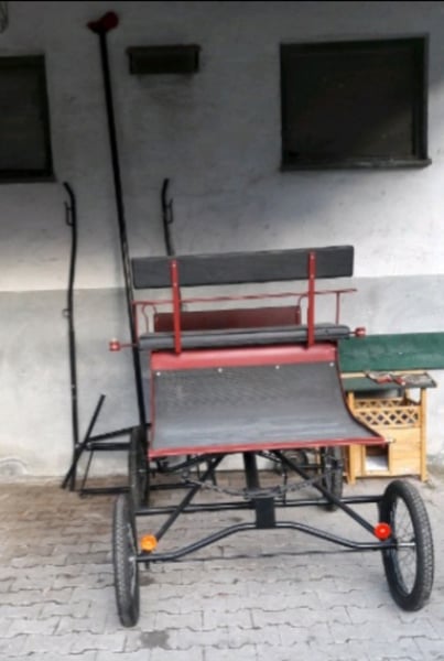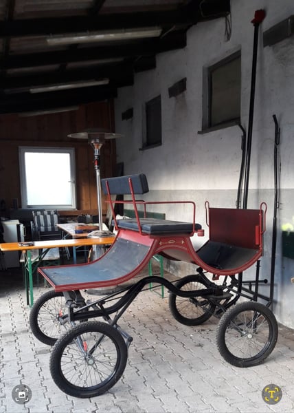 Kühnle Turnier 2 Buggy / Pferdekutsche – für Pferde bis ca. 1,60 m Verkaufe einen Kühnle Turnier 2 Buggy in gutem Zustand. Eine schöne, leichte und wendige Kutsche, ideal für entspannte Fahrten durch Wald und Wiese. Durch das leichte Gewicht eignet sich der Buggy besonders gut für Pferde bis etwa 1,60 m Stockmaß, zum Beispiel Haflinger, Kleinpferde oder Araber. Ich selbst bin die Kutsche mit einer Vollblutaraber-Stute mit einem Stockmaß von 1,56 m gefahren – sie lief damit sehr schön. Technische Daten • Spurbreite: 134 cm • Radgröße: 300–19 • Raddurchmesser: ca. 64 cm • Sitzhöhe vom Boden: ca. 125 cm • Sitzhöhe mit Keil: ca. 140 cm • Gesamtlänge: ca. 210 cm • Breite: ca. 135 cm • Gewicht: ca. 140 kg inkl. Deichsel und Schere Zusätzlich vorhanden Ein Einspänner-Brustblattgeschirr aus Leder ist ebenfalls vorhanden: • Brustblattgeschirr: schwarz • Kopfgestell mit Scheuklappen: schwarz • Fahrleinen: hellbraun Das Geschirr wurde nur sehr wenig genutzt, da mein Pferd leider kurz danach an einer Kolik verstorben ist. Preise Buggy: 950 € Einspänner-Brustblattgeschirr: 390€ Komplettpreis Buggy + Geschirr: VB realer Preisvorschlag Nur Abholung Der Buggy lässt sich gut in einem Zweier-Pferdeanhänger transportieren. Die Schere passt komplett hinein, die Deichsel kann hinten mit einer roten Fahne etwas herausragen. Privatverkauf, daher keine Garantie, Gewährleistung oder Rücknahme.