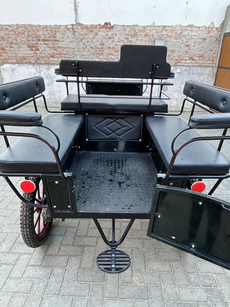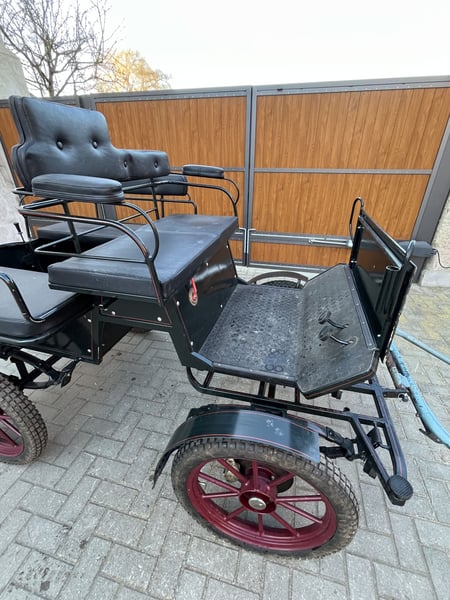 Ich biete eine gut erhaltene Kutsche zum Verkauf an, da sie leider für unser Pony mit einen Stockmaß von 1,05m zu groß ist. Sie ist 4-fach gebremst und hat eine Feststellbremse. Die Räder haben ein Schnellwechselsystem. Man kann sie Ein- und Zweispännig fahren. Bockhöhe 1,10m Spurbreite 1,30m Es handelt sich um ein Privatverkauf, Keine Garantie, keine Gewährleistung, keine Haftung.