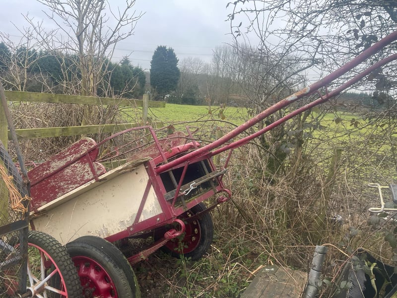 Good strong chariot type cart with a tow hitch seats 4 people easy. This cart is very well built you cannot break it. The wheels axel and springs alone are worth my asking price alone will fit from 13h to 15h easy 100 ono pik up from prestwitch area 07923602435 all it needs is fresh wood