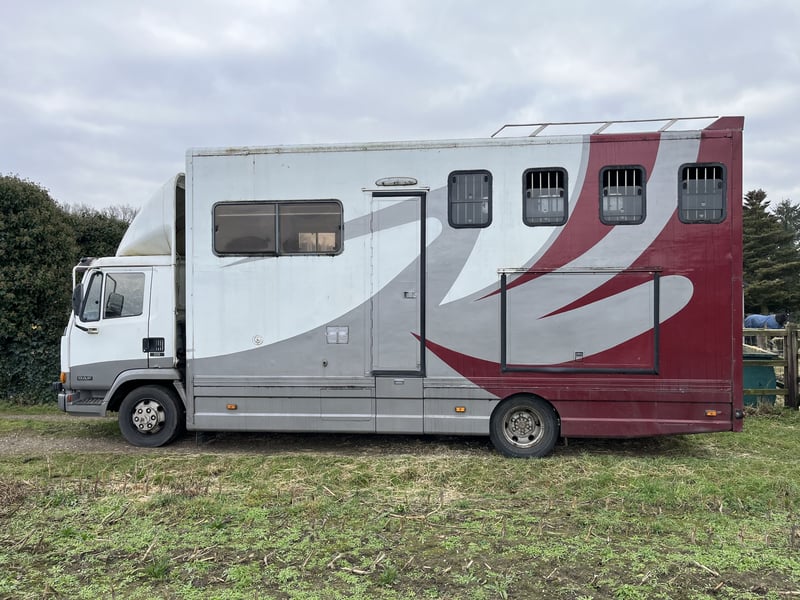 Ik verkoop mijn DAF 45, 3 paards vrachtwagen Met en kleine living. De wagen is van 2000, heb en geldig apk tot 26 Okt 2026. De wagen start aaltijd, en de paarden staan aaltijd rustig