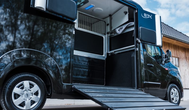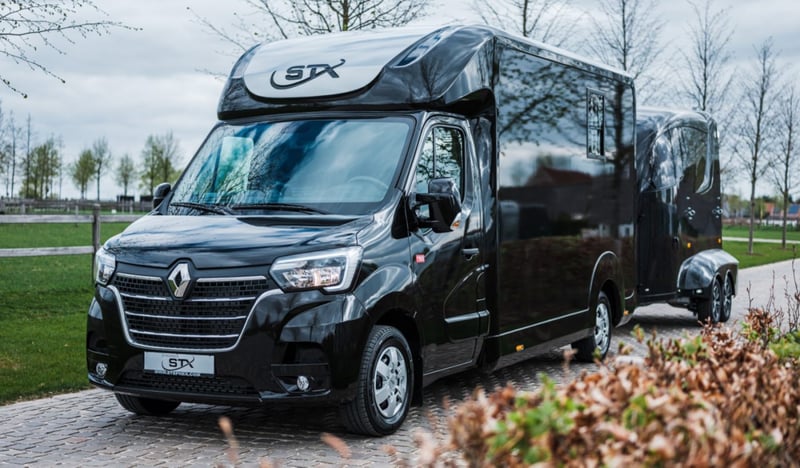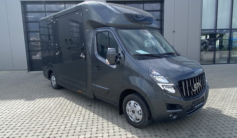Multiple versions available! Contact us for more information Plusieurs exécutions disponibles ! Contactez nous pour plus d'informations Multiple versions available! Contact us for more information Stallion, Chestbar, Exclusive edition, Renault Master and Opel Movano,... Marque : STX Châssis: Renault / Opel Poids: 3.5T Puissance (CV): 165 Chevaux: 2 Dimensions: 2.1 x 6.2 x 2.8 m Espace Cab Sièges en cuir avec accoudoirs Radio / MP3 / Bluetooth - GPS Vitres et rétroviseurs électriques Verrouillage central Boule d'attelage Climatisation Boîte de vitesses automatique Régulateur de vitesse Feux anti-brouillard Espace Cheval Cloison ajustable Ventilation Fenêtres de toit et fenêtres latérales Eclairage LED bleu/blanc Sellerie avec porte-selles et porte-brides Revêtement de sol en caoutchouc Chaînes de fixation Options Anneaux de fixation chevaux Barre de fixation chevaux Boite automatique Caméras (partie chevaux et recul) Conduite à Droite (RHD) Coussin de protection de tête Intérieur cuir personnalisable Lettrage extérieur Peinture - Toutes couleurs disponibles Sellerie mobile Simple ou Double cabine (3 ou 5 personnes) Placard coulissant Porte-sulky Brand: STX Chassis: Renault / Opel Weight: 3,5T Power (HP): 165 Horses: 2 Dimension: 2.1 x 6.2 x 2.8 m Cabin Area Leather seats with armrests Radio / MP3 / Bluetooth - GPS Electric windows and mirrors Central locking system Trailer hitch Air conditioning Manual gearbox Cruise control Fog lights Horse Area Adjustable partition Electrical air extractor Skylights and lateral windows LED lighting blue/white Tackroom with saddle and bridle holders Rubber flooring Fastening chains Options Single or Double cabin (3 or 5 persons) Automatic gearbox Cameras (horse area and rearview) Mobile tackbox Horse fixing bar Horse fixing rings Head protection pads Sulky holder Customizable leather interior Painting - All colors available Outside stickering Right Hand Drive (RHD) Closeable cupboard Brand: STX Chassis: Renault / Opel Weight: 3.5T Power (HP): 165 Horses: 2 Dimensions: 2.1 x 6.2 x 2.8 m Cabin Leather seats with armrest Radio / MP3 / Bluetooth - GPS Electric windows and mirrors Central locking Trailer hitch Air-conditioning Manual gearbox Cruise Control Fog lights Horse section Adjustable separation Electric air extraction system Skylight and lateral windows LED lights blue/white tack room with saddle and bridle holders Rubber floor Attachment chains Options Single or double cabin (3 or 5 people) Automatic gearbox Cameras (horse area and rear view) Mobile saddle locker Attachment bar for horses Attachment Rings for Horses Pads for head protection Sulky holder Customisable leather interior Painting - all colors available Stickers on the outside Right-hand drive Lockable cabinet