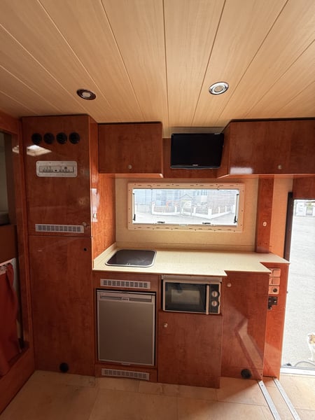 MAN TGM 18.240 Pferdetransporter – 6 Pferde – Steinsberger Aufbau (Neuaufbau von 2010) Wohnabteil – Popout - immer zuverlässig! Preis: 75.000 inkl. MwSt Fahrzeugdaten: • Modell: MAN TGM 18.240 • Erstzulassung: 20.03.2007 • Kilometerstand: 276.264 km • 240 PS • Kraftstoff: Diesel • Zulässiges Gesamtgewicht: 18.000 kg • HU gültig bis: April 2026 (ohne Probleme) • Euro 4 Pferdeabteil (Steinsberger Aufbau): • Platz für 6 Pferde • Gepolsterte Trennwände • Seitliche Fenster + 2 Dachfenster für optimale Belüftung • Kamera im Pferdeabteil • Seiten- und Heckrampe • 2 Sattelkammern • viel zusätzlicher Stauraum Wohnabteil: • Sehr großes, geräumiges Wohnabteil • seitliches Popout • Schlafplätze für bis zu 5 Personen • Küche: Waschbecken, Mikrowelle und Kühlschrank • Bad: Dusche und Waschbecken • TV Technik & Ausstattung: • Rückfahrkamera • Kamera im Pferdeabteil • Anhängerkupplung Zustand: • Technisch einwandfrei • Sehr gepflegt, sowohl innen als auch außen • Sofort einsatzbereit • Keine bekannten Mängel • Fahrzeug immer zuverlässig gefahren Standort: Baden-Württemberg