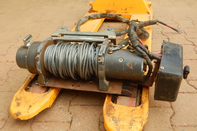 24 Volt LKW Seilwinde 20 m Drahtseil( 10 mm) mit Haken, 15 m Steuerkabel, Antrieb kann weggeschaltet werden um Seil auszuziehen 2,4 m Batteriekabel