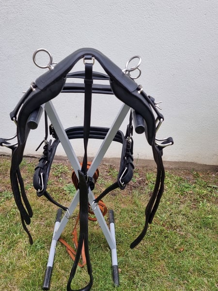 Einspänner Brustblatt-Kutschgeschirr der Sattlerei Meinecke für Warmblut. Handgefertigt aus rein pflanzlich gegerbtem Rinds-Leder - Brustblatt für Einspänner komplett mit Halsriemen, ca. 8,5 cm breit, mit Beleg und Filzeinlage - Sellet für Marathon besonders stabil - Schweifriemen - Kurzstränge - Einspännerleine aus Spezialleder Das Geschirr ist in einem neuwertigen und gepflegtem Zustand, da es nur wenig genutzt werden konnte. Mein Friese ist leider unerwartet viel zu früh verstorben. Die Produkte der Sattlerei Meinecke stehen für höchste Qualität, ohne Kompromisse bei Komfort, Funktionalität, Design und Qualität. Abholung in Hilden möglich Versand gegen Versandgebühr Zahlung per Paypal Da Privatverkauf keine Garantie, Gewährleistung oder Rücknahme