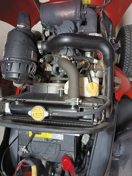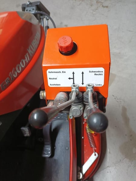 Der Rasentraktor ist sofort einsatzbereit. Technische Daten Motor: 2-Zylinder Kubota Diesel, ca. 13,5 PS (10 kW) Schnittbreite: 107 cm Mähwerk Schnitthöhe: ca. 25–102 mm einstellbar Grasfangkorb: ca. 370 Liter Antrieb: Hydrostat-Getriebe (stufenlos) Tank: Diesel 18 Liter Baujahr 2012: 198 Betriebsstd. Ausstattung: Zwischenachsmähwerk mit 2 Messern Gelenkwellen-Mähwerksantrieb (sehr langlebig) - das Mähwerk kann mit zwei Handgriffen unter dem Trakor rausgefahren werden. Sehr gut um das Mähwerk zu reinigen und Messer zu schärfen. Zentrale Schnitthöhenverstellung mit einer Hand Hydrostat-Fahrantrieb ohne Kuppeln Mit Fronthydraulik - Anbau eines Schneeschiebers auch möglich. Sehr großer Wurfschacht. Mähen auch bei Regen möglich. Kein Verstopfen wie bei Rasenmähertraktoren mit kleinem Wurfschacht. Der Rasenmäher verfügt über einen Hebel der den Wurfschacht leeren kann. Die Kehrmaschine kann vom Sitz aus entleert werden. Kein Absteigen nötig. Hydraulische Verstellung (hoch/runter und Schwenkbar) mit Seitenkehrbesen. Die Kehrmaschine ist von 2018.
