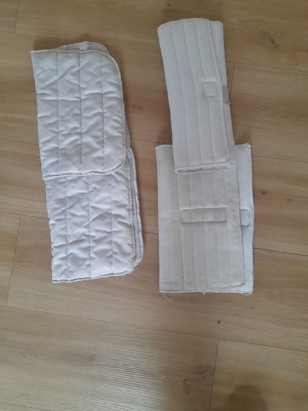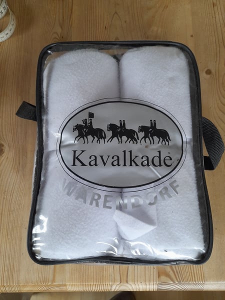 Ich verkaufe hier ein komplettes 4er Set Flees-Bandagen in weiß inklusive Tasche zur Aufbewahrung. Dazu gibt es noch 4 passende Bandagierunterlagen [2x vorne und 2x hinten]. Wenn notwendig plus Versandkosten.