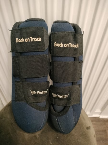 Die Back on Track Arbeitsgamaschen bestehen aus strapazierfähigem Neopren, das stoßabsorbierend wirkt und das Pferdebein zuverlässig schützt. Mit dem bewährten Welltex-Material ausgestattet, das den bekannten Back on Track-Effekt bietet. Größe XL, top Zustand! wird noch vor Versand gewaschen.