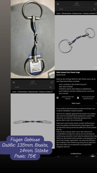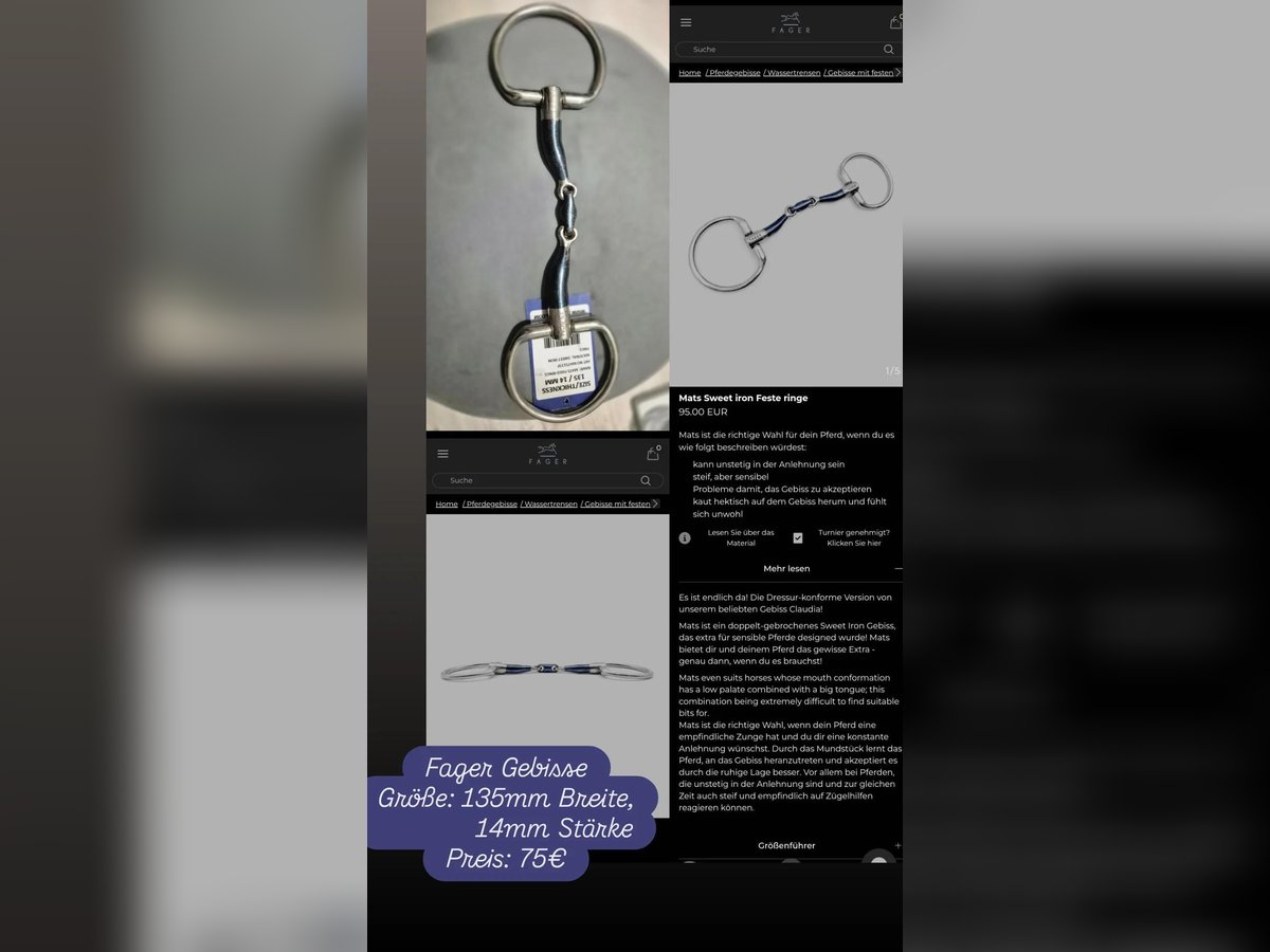 Ich Verkaufe ein Doppeltgebrochenes Gebiss mit 135mm Breite und 14mm stärke, ist nur einmal gebraucht aber hat leider Kratzer dran weil mein Pferd es mit der Zunge auf die Backenzähne gezogen hat und drauf gekaut hat, ansonsten einwandfreier zustand und wie neu, da ja nur einmal Benutz. Versandkosten ist noch nicht im Preis enthalten.