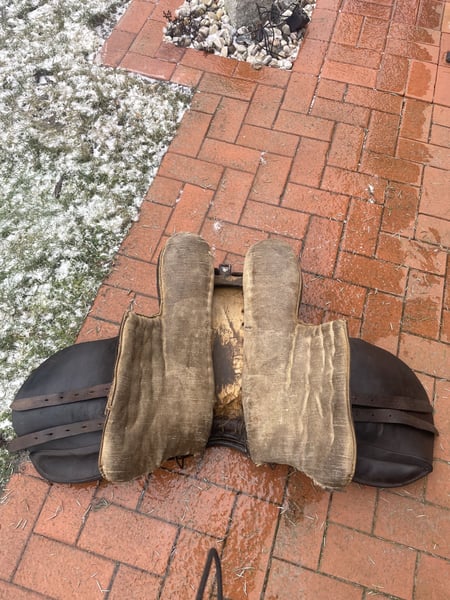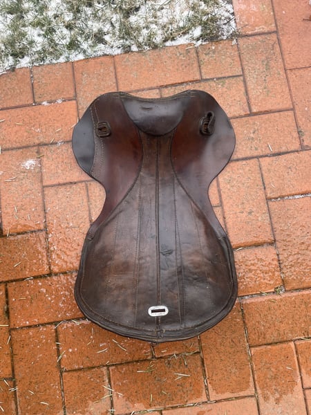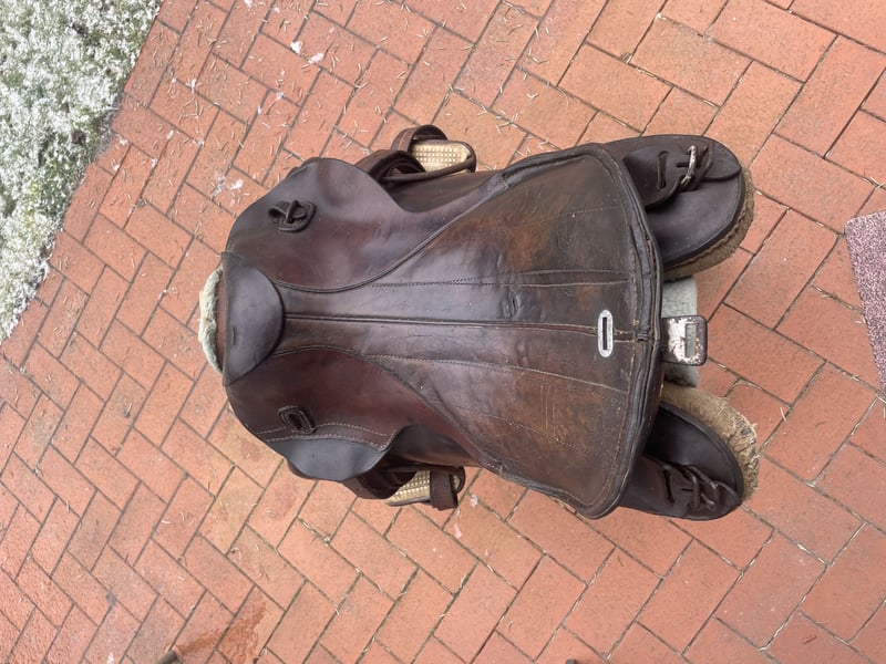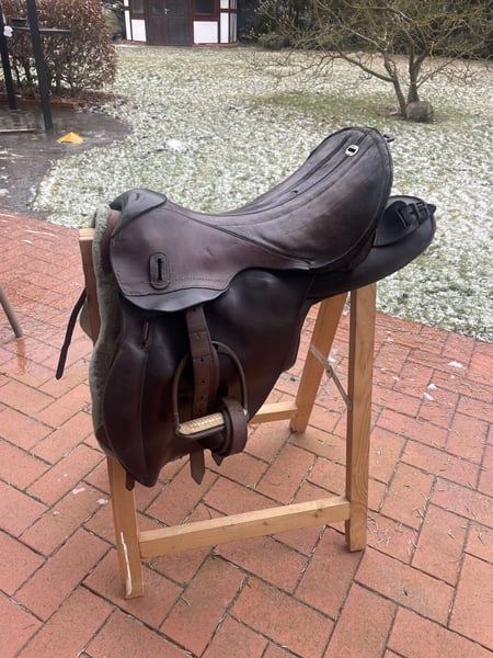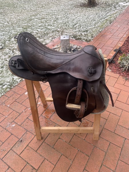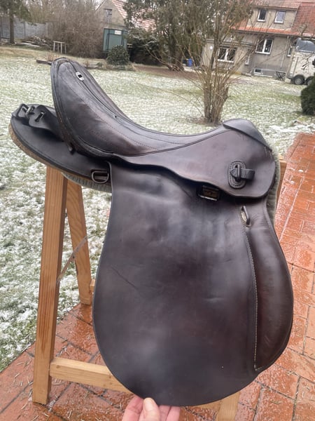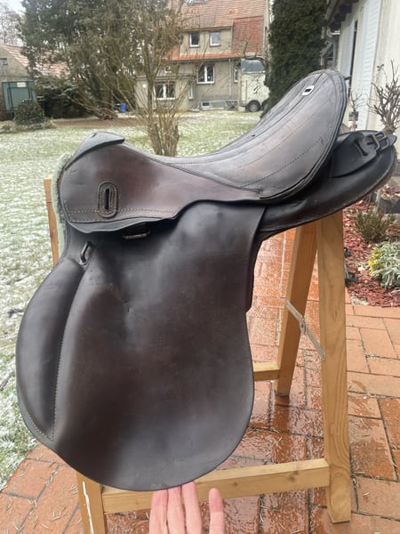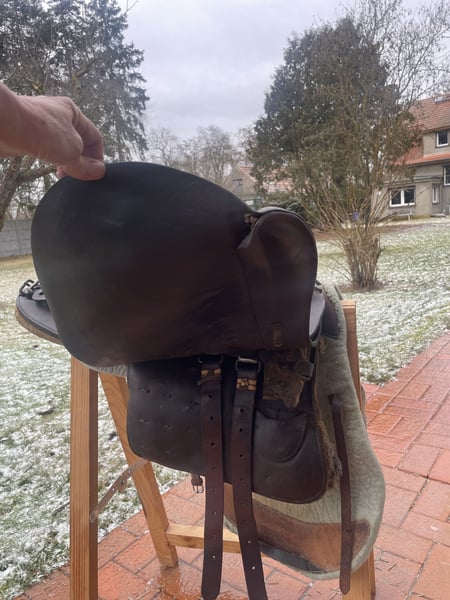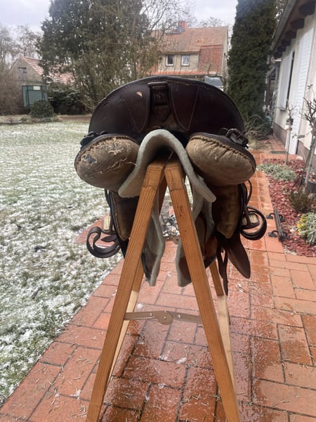 Verkaufe hier einen historischen Militärsattel, der über 100 Jahre alt ist und aus dem ersten Weltkrieg stammt. Dieser authentische Sattel aus echtem Leder ist ein wahres Sammlerstück: • Breite Kammer - passt auf verschiedene Pferderücken • Große Auflagefläche für gute Gewichtsverteilung • Robuste Militärqualität aus vergangener Zeit • Klassisches Design mit historischem Charme Der Sattel ist reparaturbedürftig und benötigt eine fachgerechte Aufarbeitung, um wieder geritten werden zu können. Perfekt für Sammler oder jemanden, der ihn restaurieren möchte. Der Sattel wird inklusive echt Leder Steinbügelriemen, Steigbügel und historischer Sattelunterlage aus Filz mit Verstärkungen aus echtem Leder verkauft. Für Selbstsbholer aus 15374 Müncheberg oder Versand auf Kosten des Käufers (zusätzlich 20 €, also dann insgesamt 90 € inklusive Versand). Er wiegt inklusive Zubehör etwa 11 kg. Hinweis: Wegen der neuen Gesetzesbestimmungen erfolgt der Verkauf unter Ausschluss jeglicher Gewährleistung, Garantie und Rücknahme. Da es sich um einen Privatverkauf handelt kann ich keine Garantie nach neuem EU-Recht übernehmen. Der Käufer erklärt sich damit einverstanden und erkennt dies mit seinem Kauf an. Laut dem neuen EU-Recht muss dieser Zusatz unter jedem Online-Verkauf stehen, ansonsten haftet der Verkäufer auch als Privatperson ein ganzes Jahr für die verkaufte Ware. Bei Fragen melde dich gerne.