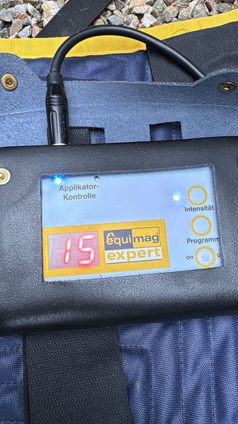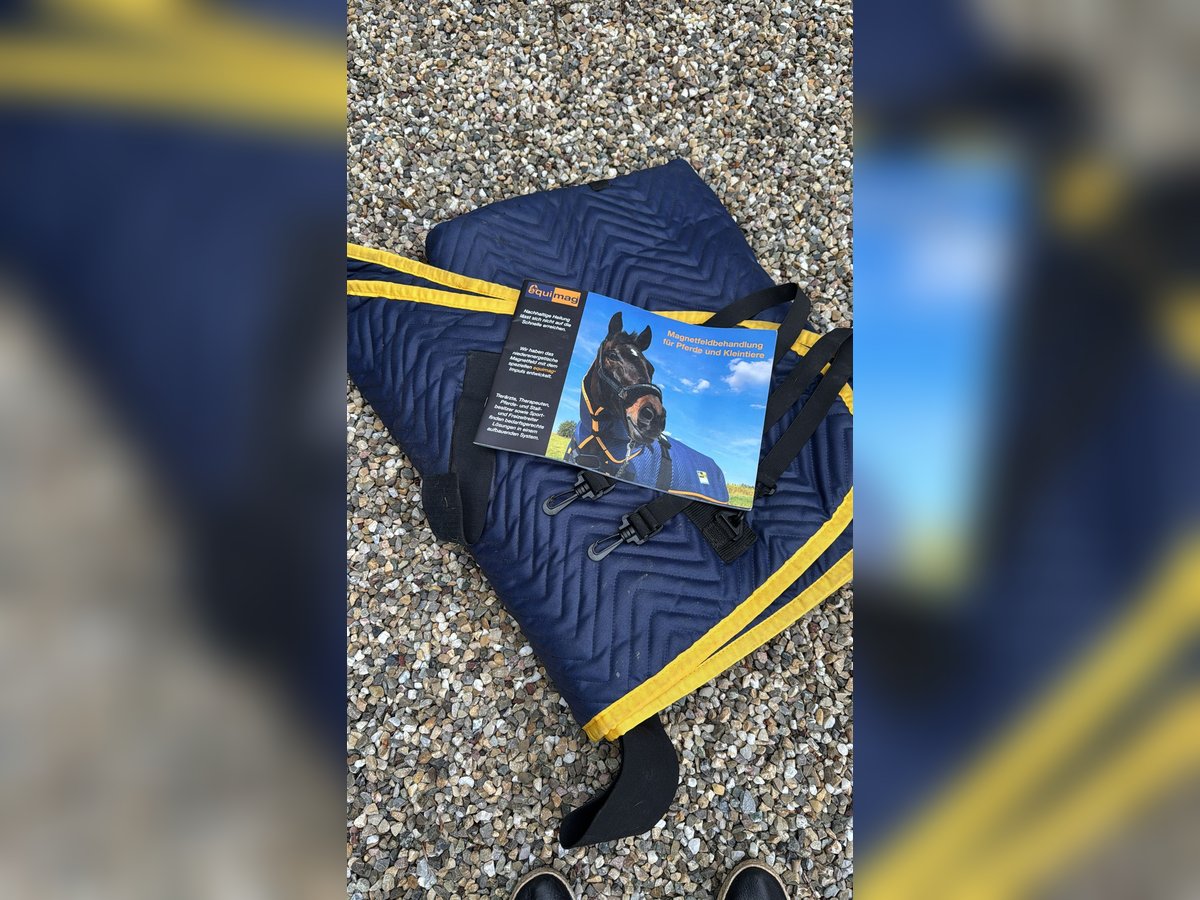 Edit, da es Lesefaule Menschen gibt: Zu den oben aufgeführten Konditionen erhalten Sie: eine neuwertige Equimag Decke nebst Steuergät, Tasche und Gurt. KEIN halsteil, keine Gamaschen. OPTIONAL kann ich Ihnen den Therapiestab dazu legen. So, nun viel Spaß beim Inserat nicht lesen.. Gesundheit und Leistungsfähigkeit fördern und erhalten durch die pulsierende Magnetfeldanwendung von equimag Der Hersteller equimag vereint in seinem revolutionären pulsierenden Magnetfeldsystem neueste wissenschaftliche Erkenntnisse mit hoher Anwender- und Bedienerfreundlichkeit. Die pulsierende Magnetfeldtherapie von equimag wurde von Experten speziell zum Einsatz am Pferd und am Kleintier entwickelt. Das System ist seit 2001 erfolgreich am Markt etabliert und stetig weiterentwickelt worden. Equimag expert empfiehlt sich besonders für den ambitionierten Pferdehalter, Tierarzt oder Tiertherapeuten. Die EQUIMAG Magnetfeldtherapie kann unterstützend und regulierend bei verschiedenen Problemen zum Einsatz kommen: Veränderungen des Bewegungsapparates (Gelenke, Knochen, Muskulatur, Sehnen, Bänder) Reitschwierigkeiten Schmerzhafte Veränderungen Degenerative Auffälligkeiten Verletzungen Haltungsbedingte Schwierigkeiten Allergische Symptome Mangelnde Bewegung (z. B. bei Verletzungen) Verlangsamte Rekonvaleszenz (Heilung) Aktivierung und Entlastung von Gelenken, Muskeln, Sehnen, Bändern vor und nach sportlichen Leistungen Im Sport und beim Training kann die pulsierende Magnetfeldtherapie positiv unterstützen für eine bessere Mobilität für eine bessere Leistungsfähigkeit die Verletzungsgefahr zu verringern die nervlichen Belastungen im Sport zu kompensieren nach Verletzungen kann die Anwendung zu einer rascheren Regeneration des Gewebes führen beim Training und Gymnastizieren von Sportpferden Tierärzte, Tierheilpraktiker und Tierphysiotherapeuten können die pulsierende Magnetfeldtherpie von EQUIMAG zur Unterstützung ihrer Behandlung anwenden: für die Mobilität der Gelenke und der Muskulatur bei der veterinärmedizinischen Therapie von chronischen und akuten Sehnen-, Gelenk- und Muskelproblemen bei entzündlichen und degenerativen Beschwerden des Bewegungsapparates kann die pulsierende Magnetfeldtherapie beschleunigend und unterstützend wirken Lieferumfang equimag expert Grundausstattung Impulsgebendes equimag expert Steuergerät mit drei Grundprogrammen und verschiedenen Programmkombinationen equimag expert Ganzkörperdecke (Gesamtlänge 175 cm, Gewicht 3 kg) Das impulsgebende Steuergerät generiert in den Applikatoren der Decke ein niederenergetisches elektromagnetisches Feld, dieses wird von den körpereigenen Zellen ohne Nebenwirkungen aufgenommen. Die niederenergetischen Impulse erhöhen bzw. regulieren die Membranspannung der Zellen, der Stoffaustausch vom Zellinneren in den Zellzwischenraum wird dadurch angeregt, wodurch die lebensnotwendige Zellspannung wiederhergestellt wird. Die Selbstheilungskräfte des Körpers werden aktiviert. Auch die Eigenschwingung der Zellen wird unterstützt, wodurch die Zellen in der Lage sind, Nährstoffe und Sauerstoff wieder effektiver zu verwerten. Das Steuergerät ist mit drei verschiedenen Grundprogrammen in zwei Intensitätsstufen ausgestattet, diese sind untereinander kombinierbar (Infos zum Einsatz der Programm-Kombinationen finden Sie in der Bedienungsanleitung). Programm 1 - Das Basisprogramm hat eine Laufzeit von 20 Minuten und dient mit halber Intensität zum Einschleichen bei Erstbehandlung und bei voller Intensität für alle akuten Entzündungsprozesse. Programm 2 - Das Vitalprogramm hat eine Laufzeit von 12 Minuten und wird bei allen chronischen Prozessen eingesetzt. Programm 3 - Das Relaxprogramm hat eine Laufzeit von 16 Minuten und dient der Regeneration und Entspannung. Durch die in der Ganzkörperdecke eingearbeiteten Applikatoren, in denen sich das Spulensystem befindet, wird der Magnetfeldimpuls gezielt dorthin gebracht, wo er benötigt wird. Die Decke hat eine Gesamtlänge von 175 cm.