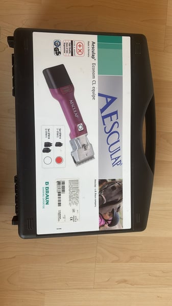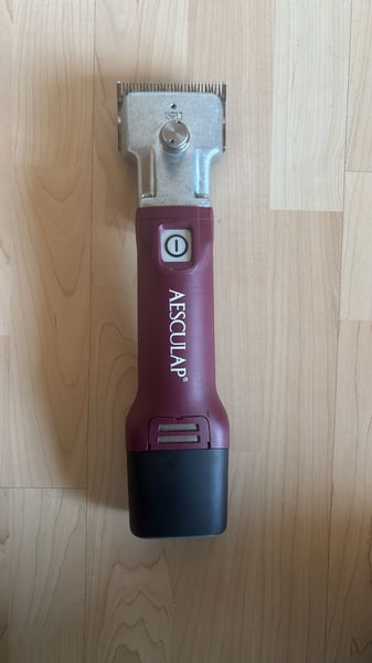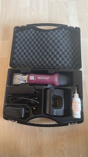 Die super tolle Schermaschine von Aesculap inklusive einem Ersatzakku. Neupreis lag bei 750 €. Es wurden maximal fünf Pferde je einmal mit dieser Maschine geschoren. Zustand so gut wie neu.