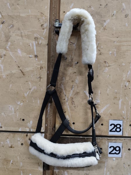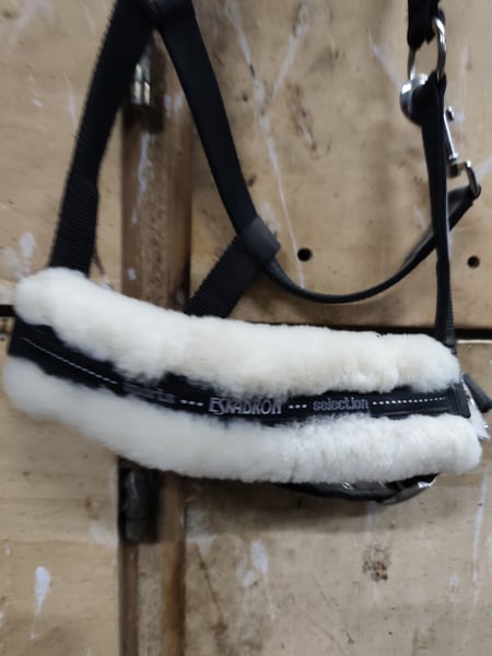Schwarzes Eskadron Halfter Größe Vollblut, mit Lammfell. Kaum benutzt