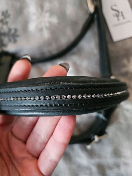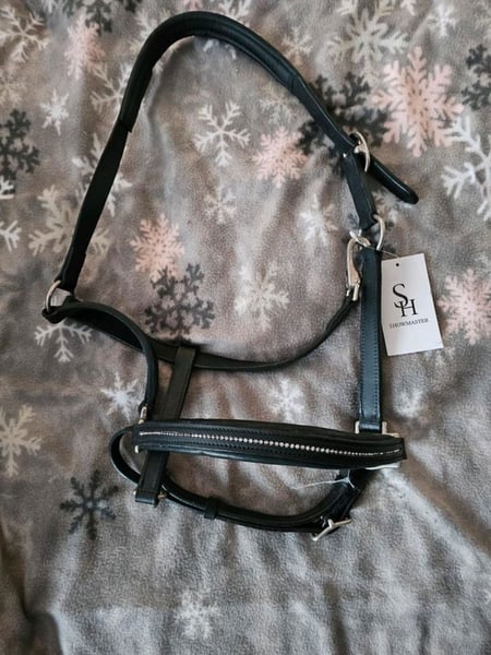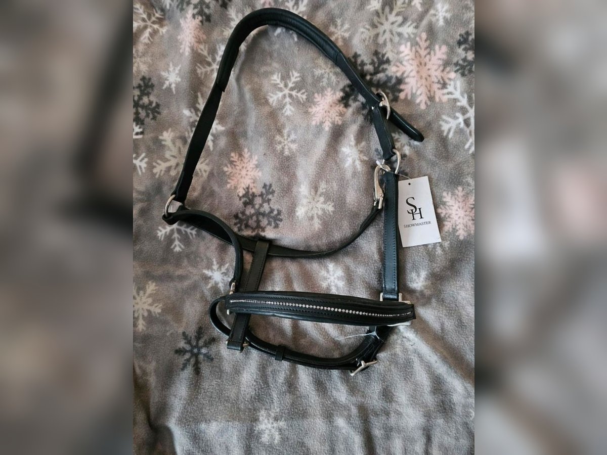 Wunderschönes schwarzes Lederhalfter mit Strasssteinen... War nur einmal am Pferd für Fotos. Bei Fragen gern melden. Der Preis ist inklusive Versand 🤗