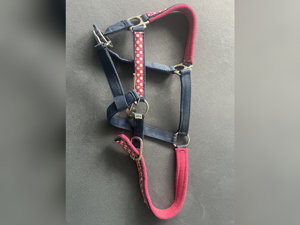 Zu verkaufen ist dieses hübsche Pony Halfter in der Farbe Navy mit pinken und weißen Details. Bei Interesse gerne melden