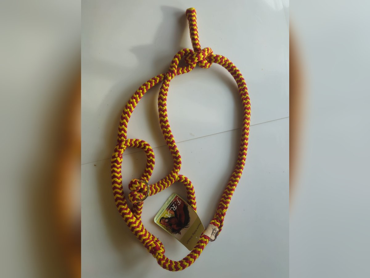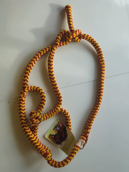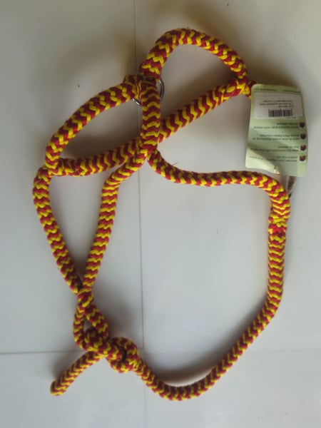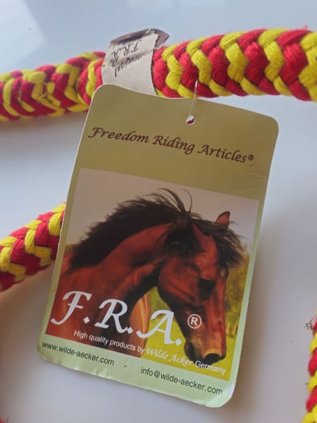 Das von der Firma F.R.A. hergestellte 10 mm dicke Baumwoll-Knotenhalfter sorgt für angenehmes Berühren und ist sanft und angenehm für das Pferdefell. Der Knotenverschluss auf der Seite kann individuell angepasst werden. Farbe: rot-gelb Größe: cob-full Preis: 10,95 € bei Abholung + 5,99 € bei Lieferung innerhalb Deutschland