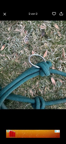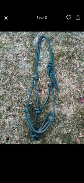 Ich verkaufe hier mein grünes Knotenhalfter. Größe WB. Es hat zwei Ringe zum Zügel oder Strick einhängen. Privatverkauf, daher keine Garantie oder Rücknahme. Versand gegen Kostenübernahme möglich.