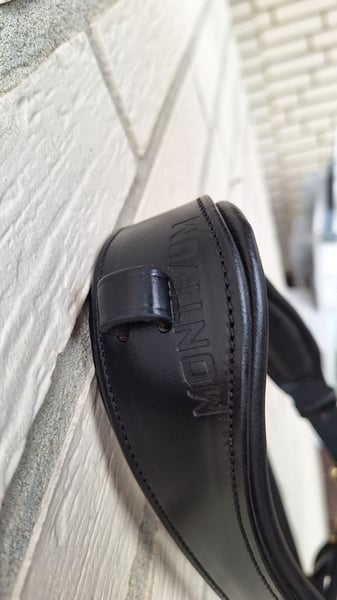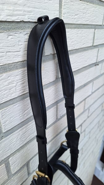 Verkaufe einen schwarzen Kappzaum mit Naseneisen und Gebissriemen von Montivum, Größe WB. Der Kappzaum ist aus hochwertigem Leder hergestellt und am Nasen- und Genickstück sehr weich gepolstert. Er war lediglich 2-3 Mal kurz auf dem Pferd und ist daher quasi neu, absolut keine Gebrauchsspuren. Der abnehmbare Gebissriemen wurde noch nie benutzt.