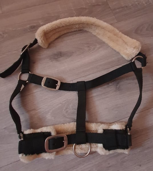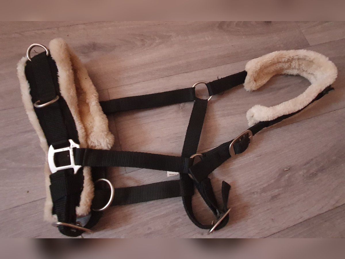 Kaum benutztes Stall & Longierhalfter Größe Full An Nase und Genick weich gepolstert mit Teddyfleece Am Genick sind Klettverschlüsse um eine Fliegenmaske einzuhängen