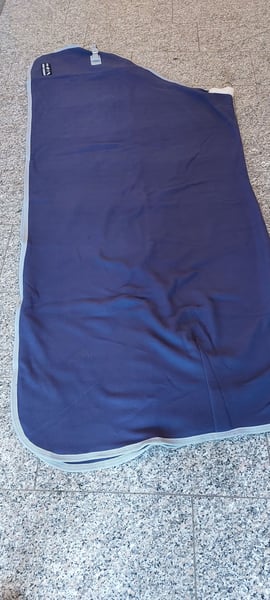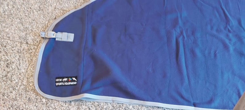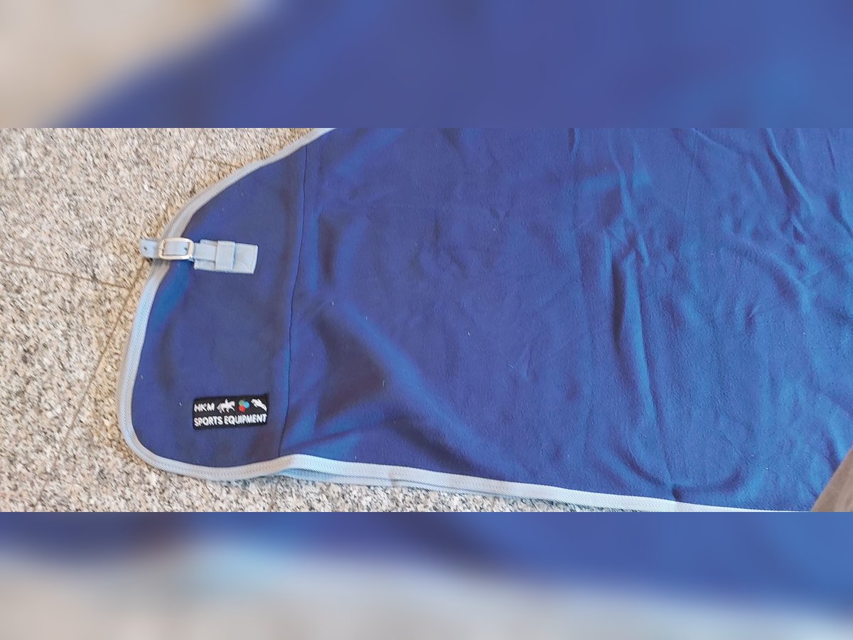 Dunkelblaue HKM Abschwitzdecke mit grauer Einfassung, Vlies 155 cm, neu, 1 Brustschnalle, weiches Widerristpolster. Preis zuzgl. Versandkosten. Keine Garantie, keine Rücknahme.