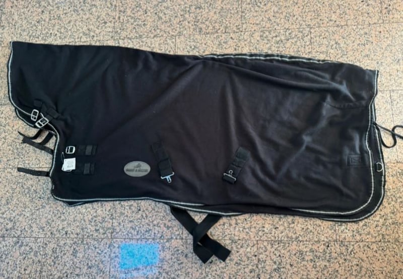 Verkaufe diese Abschwitzdecke mit integriertem Halsteil und Bauchgurten. In schwarz und Größe 135cm. Etikett ist noch dran, lag nur zur Anprobe auf dem Pony und passte ihm leider nicht. NP 39,95€