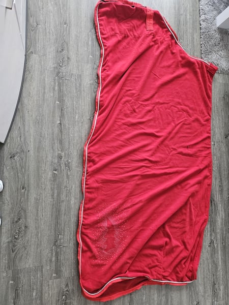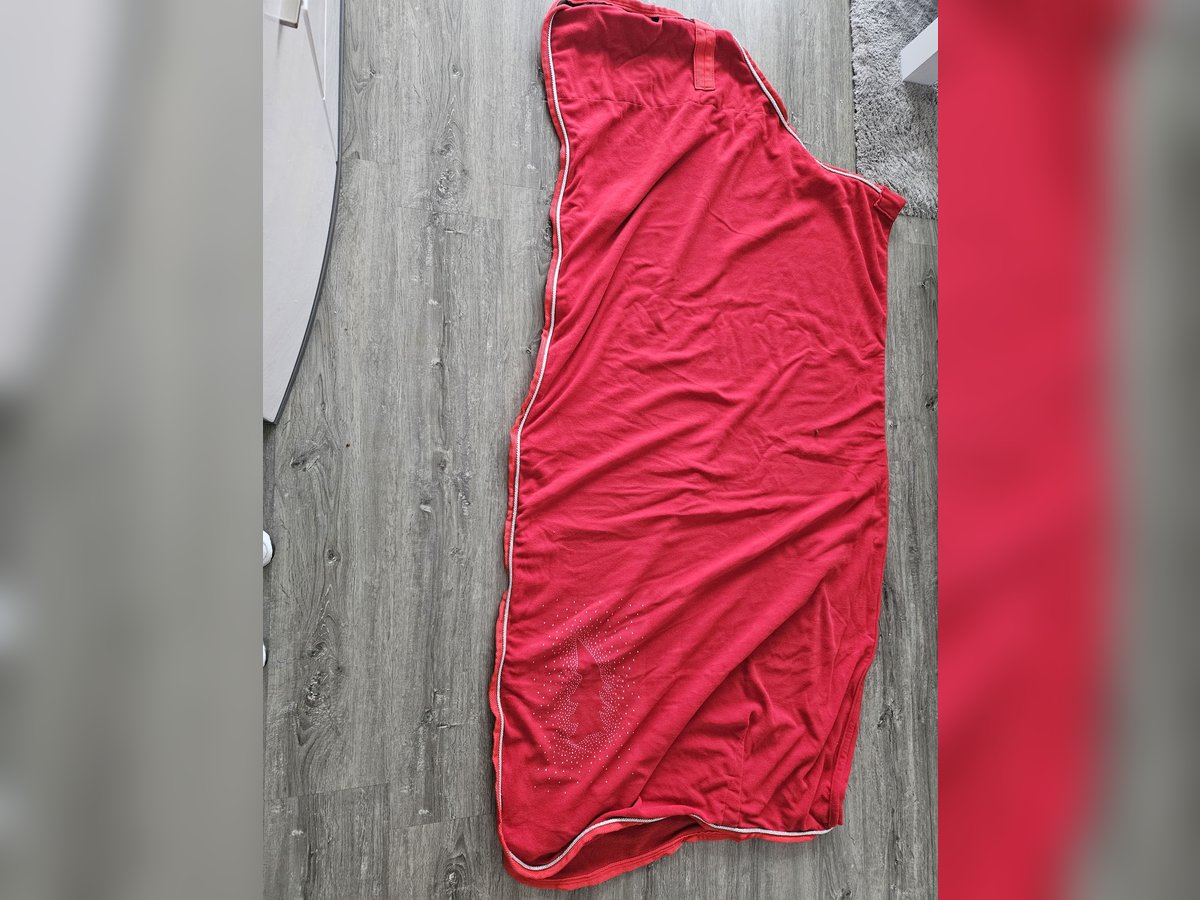 Verkaufe hier eine neue und nie auf dem Pferderücken gelegene fleece Abschwitzdecke von equiline mit Strass. Farbe: Rot Größe: 155 cm Verkaufe sie nur da mein pferd verstorben ist. Versand möglich .