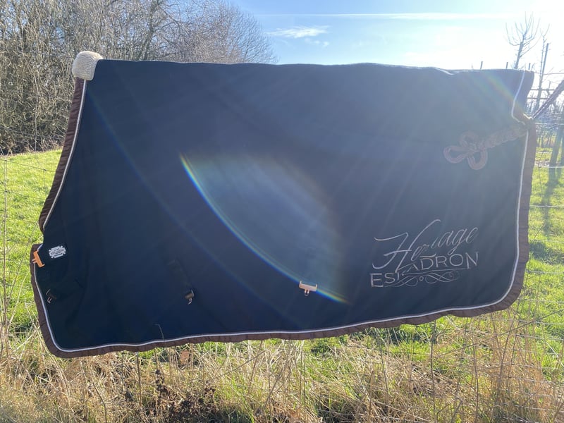 Eskadron Heritage Abschwitzdecke Gr. L (145cm), an manchen Stellen Peeling durch das Klett, Bauchgurte sind auch dabei, wurden nie genutzt. Die Decke ist gewaschen, das ein oder andere Pferdehaar lässt sich jedoch nicht vermeiden Privatverkauf - keine Rücknahme, Gewährleistung oder Gewährleistung