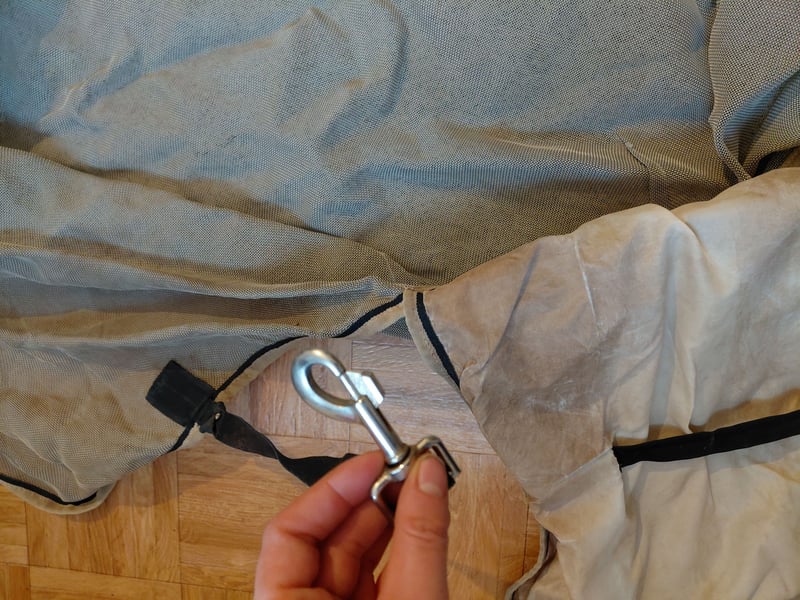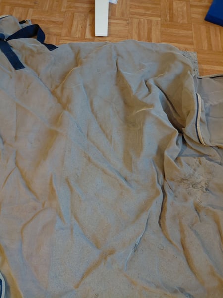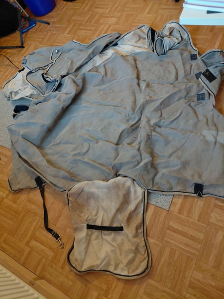 Gut gepflegt Gewaschen Eine Saison genutzt An manchen Stellen etwas aufgebaut siehe Fotos aber keine Löcher, kein Scheuern, keine Funktionsbeeinträchtigung Schützt vor Fliegen und UV-Strahlung. Aus einzigartigem patentierten, robusten Stoff, der außerdem sehr weich und bequem ist und Schutz vor der Sonne bietet. Die Pferdedecke ist äußerst strapazierfähig und hält ganz sicher mehrere Saisons Großzügig geschnittener Schweiflatz mit Seidenfutter, Gehfalten, verlängerter Bauchschutz. Außerdem begeistert die Decke durch ihr abnehmbares Halsteil. Mit dem wasserdichten Horseware® Fliegendecken-Innenfutter kompatibel. Besondere Merkmale: Atmungsaktiv V-förmiger Vorderverschluss 3 gerade Bauchgurte Abnehmbares Halsteil enthalten Doppelte Beinausschnitte Schweiflatz Abwischbarer Schweifriemen UV-Schutz Mit Unterdecke kompatibel Privatverkauf Keine Rücknahme