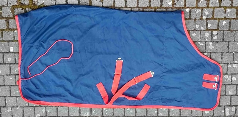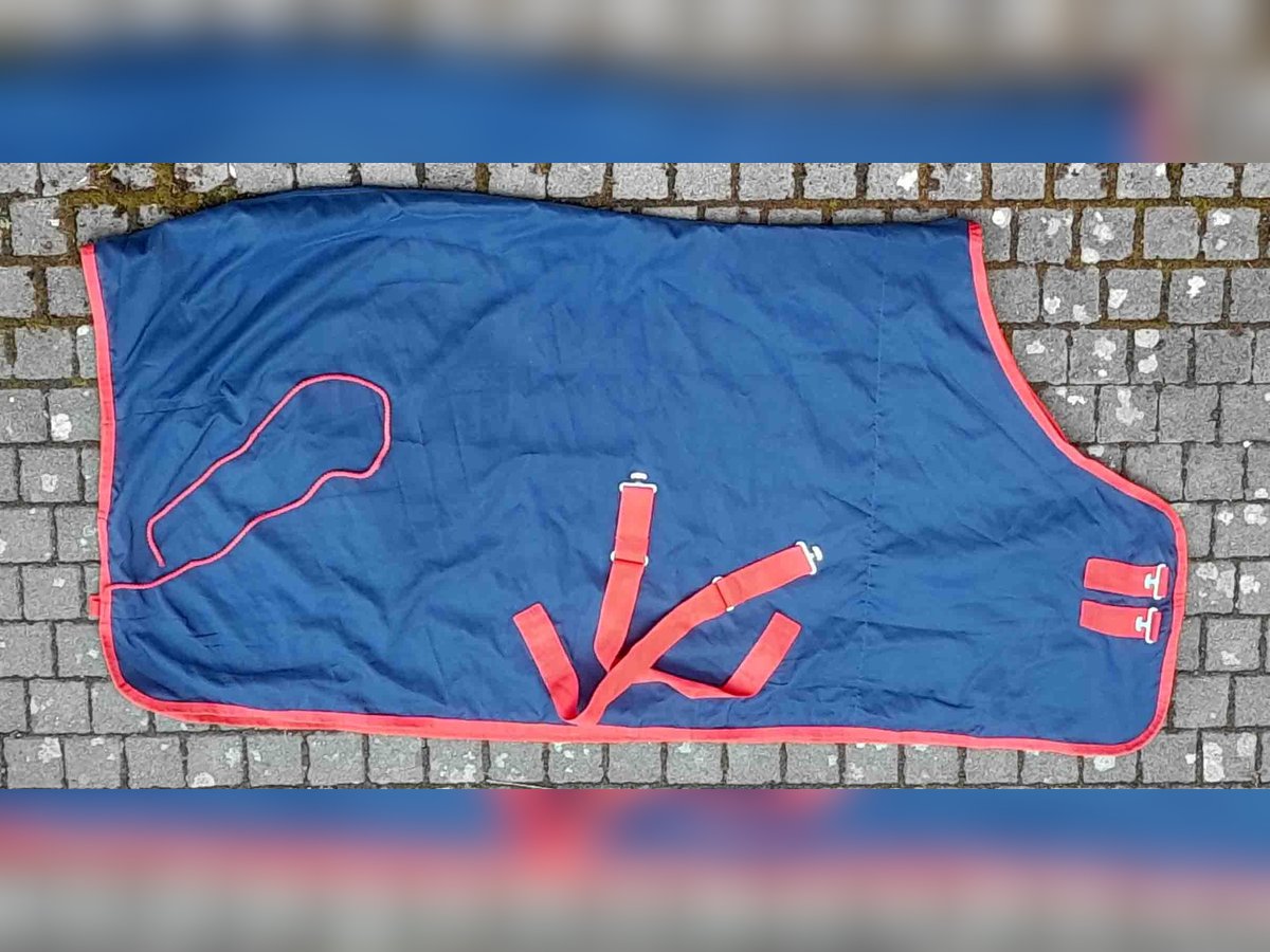 2 leichte Stalldecken, 0 Gramm, von Mio nahezu ohne Gebrauchsspuren und selten benutzt abzugeben. Gereinigt und desinfiziert. Farbe: Blau-Rot. Rückenlänge 130 cm. Kreuzbegurtung und Schweifriemen. Der Preis bezieht sich auf eine Decke, sie können natürlich einzeln abgegeben werden.