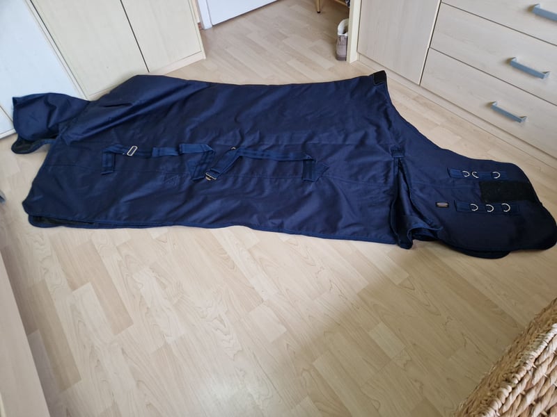 Ich verkaufe meine sehr robuste Euroriding Outdoor-Decke „Kodiak Heavy“ in der Größe 145 cm. Wer Euroriding kennt, weiß, dass hier Markenqualität auf Funktionalität trifft. Diese Decke ist die perfekte Wahl für kalte Wintertage! Die Decke ist gebraucht, wurde aber frisch gewaschen und ist in einem guten, einsatzbereiten Zustand. Sie lag nur wenige Male auf meinem Pferd und ist erst 3 Monate alt. Die Highlights der Kodiak Heavy: • Maximale Wärme: Mit einer 250g Isolierung hält sie das Pferd auch bei frostigen Temperaturen (bis zu -20 Grad) zuverlässig warm. • Extrem Robust: Das Außenmaterial besteht aus strapazierfähigem 1200D Ripstop-Gewebe. Sie ist wind- und wasserdicht (3.000 mm Wassersäule) und dabei voll atmungsaktiv. • Fellschutz: Das Innenfutter aus samtweichem Polyester-Taft verhindert Haarbruch und sorgt für einen schönen Glanz. Ein integrierter Widerrist-Schoner schützt zusätzlich vor Reibung. Passform & Details: • Bewegungsfreiheit: Dank der großzügigen Gehfalte und der flexiblen Kreuzbegurtung kann sich das Pferd auch im Winter auf der Koppel austoben. • Durchdachter Verschluss: Verstellbarer 2-facher Drehhaken-Brustverschluss mit zusätzlicher Klett-Überlappung für besseren Halt und mehr Spielraum im Brustbereich. • Sicherer Sitz: Kreuzgurte mit elastischen Einsätzen sowie elastische, abnehmbare Beinschnüre und ein tiefer Schweifriemen verhindern das Verrutschen. • Wetterschutz: Ein besonders großer Schweiflatz bietet optimalen Schutz gegen Wind und Regen von hinten. Zustand: Gebraucht, frisch gewaschen, voll funktionsfähig. Neupreis: 80,00 € Preis: 70,00 € Verhandlungsbasis Abholung oder versicherter Versand gegen Übernahme der Kosten möglich. Die Decke wird noch auf anderen Portalen angeboten. Privatverkauf: Keine Garantie, Gewährleistung oder Rücknahme.