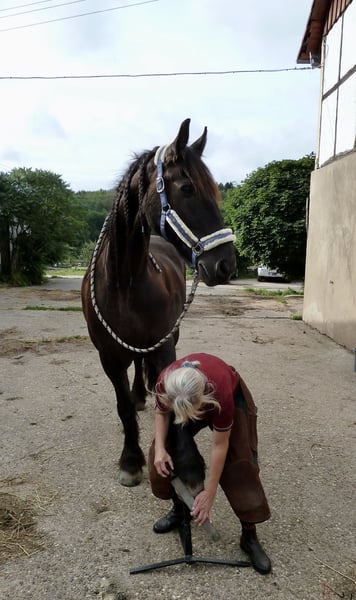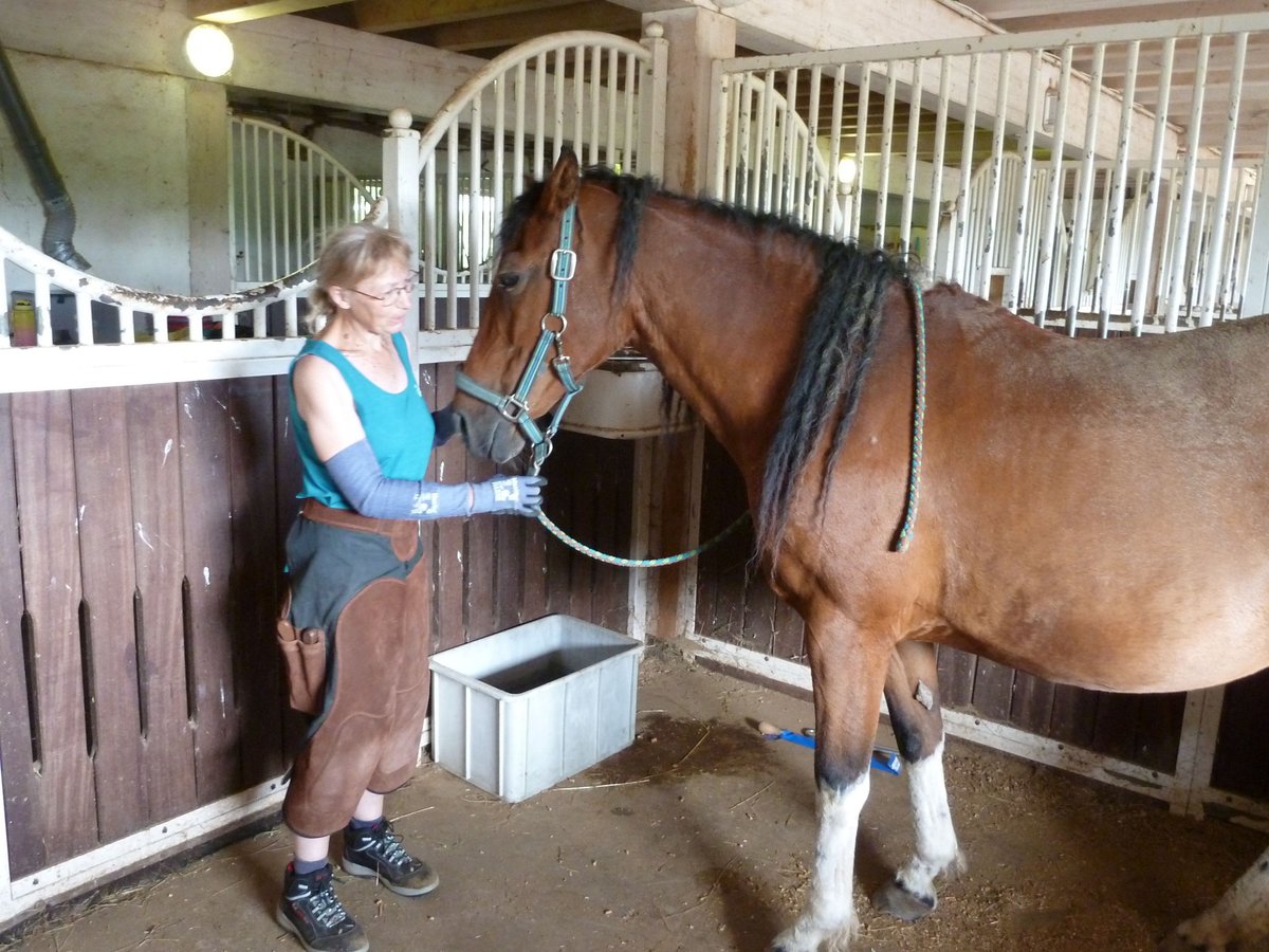 Huforthopädin in den letzten Zügen der Ausbildung (praktische Prüfung erfolgreich bestanden) beim Deutschen Institut für Huforthopödie (DIfHO) nimmt Kundenpferde an im Stadt- und Landkreis Karlsruhe und darüber hinaus. Auch nach Pforzheim fahre ich, desweiteren ins Elsass, Ortenau, Wasgau und Südpfalz. Ich habe viel Erfahrung und Geduld bei Arthrose-/Spat- und älteren Pferden. Bei der Bearbeitung nehme ich mir viel Zeit und Ruhe für Ihr Pferd. Huforthopädie ist für alle Pferde. Jeder Huf wird einzeln in seiner jetzigen Situation abgeholt und es wird ihm geholfen, wieder physiologisch in seine richtige Balance zu kommen. Rillen, Risse, Spalten etc. sind Anzeichen, dass der Huf seine Tragfähigkeit verloren hat. Diese Fehlstellungen werden unter Rücksichtnahme auf Gelenke, Sehnen und Bänder bearbeitet. Es werden keine abrupten Korrekturen durchgeführt. Die Bearbeitung geschieht durch kurze Intervalle von 4 Wochen, da der Huf etwa 1 cm im Monat wächst. Wenn Sie dies anspricht, freue ich mich über Ihre Anfragen! Pony/Pferd: 40 € Kaltblut: 60 € Ab 15 km kommen noch die Anfahrtskosten dazu. Viele Grüße Brigitte Wolf