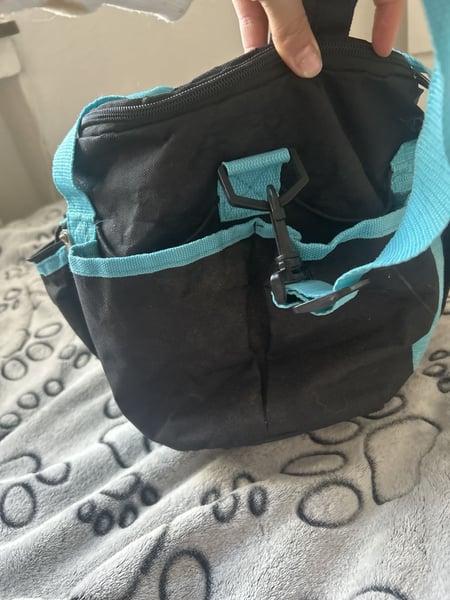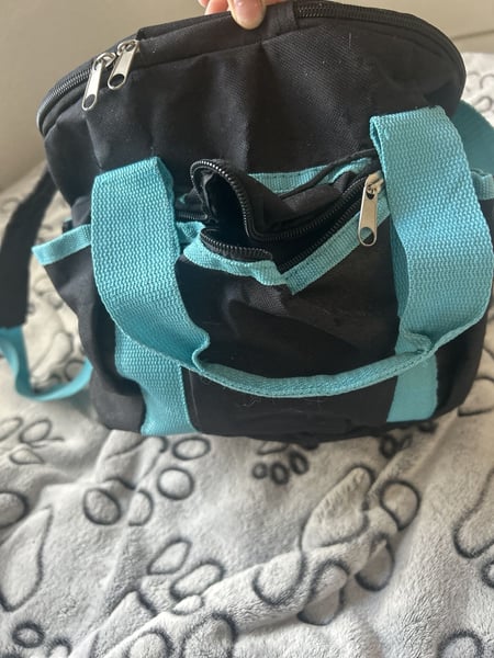 Verkaufe meine praktische Putztasche von Lami-Cell in schwarz mit türkisfarbenen Akzenten. Die Tasche ist ideal für die Aufbewahrung von Pflegeutensilien geeignet. • Marke: Lami-Cell • Robustes schwarzes Material mit türkisfarbenen Griffen • Praktischer Tragegurt und Tragegriff • Geräumiges Hauptfach mit Reißverschluss • Kompakte Größe für den Transport Die Tasche ist nur leicht eingestaubt, ansonsten in sehr gutem Zustand. Sie bietet ausreichend Platz für Bürsten und andere Pflegeutensilien und lässt sich bequem transportieren. 10€= ohne Putzzeug 14€= mit Putzzeug Bei Fragen melde dich gerne.