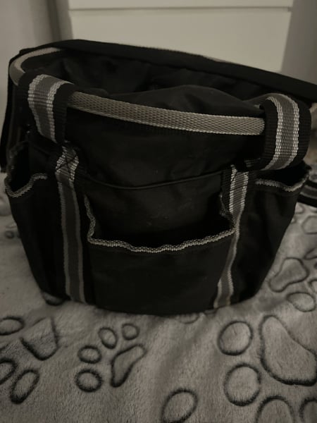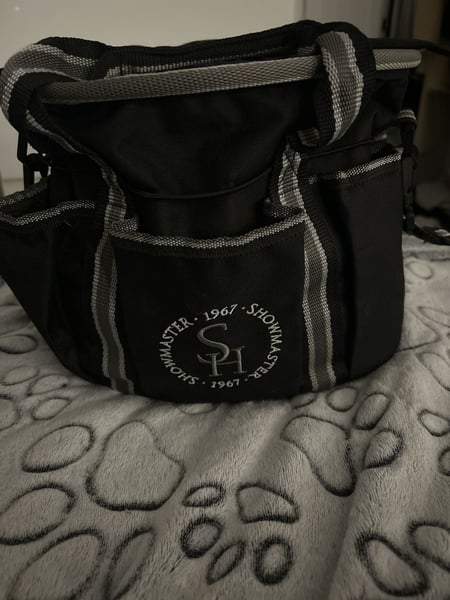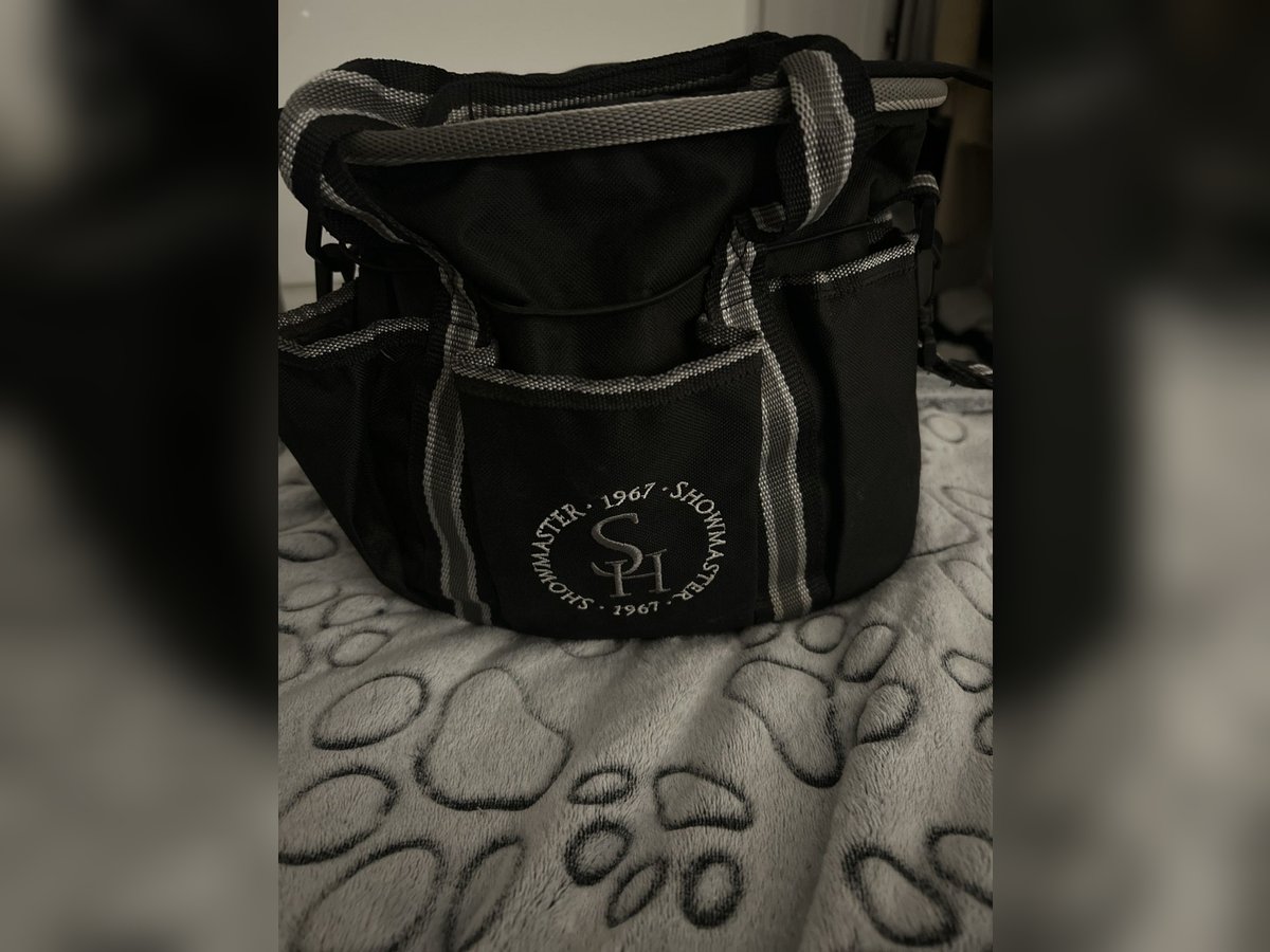 Verkaufe meine Putztasche von Showmaster (Krämer) in schwarz mit grauen Akzenten. Die Tasche ist praktisch für die Pferdepflege und bietet viel Stauraum für Putzzeug. • Marke: Showmaster by Krämer (seit 1967) • Schwarzes robustes Material mit grauen Kontrastnähten • Zwei kurze Tragegriffe plus verstellbarer Schultergurt • Geräumige Hauptfächer für Bürsten und Pflegeutensilien • Stabile Verarbeitung für den Stallalltag Sie ist nur etwas eingestaubt, ansonsten in sehr gutem Zustand. Falls gewünscht, kann ich auch passendes Putzzeug dazu anbieten. Ohne Putzzeug 8€ Mit Putzzeug 14€ Bei Fragen melde dich gerne.