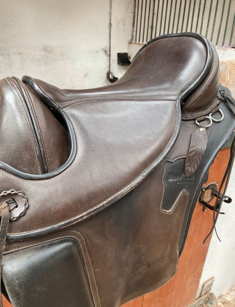 Verkaufe meinen wenig genutzten Barefoot Cherokee Sattel in der Farbe Schwarz-braun, Größe 2. Der Sattel befindet sich in einem sehr guten Zustand und ist noch nicht eingesessen. Somit optimal für den Neustart und die Anpassung an ein Pferd. Ich hatte ihn zum Anreiten benutzt, nun habe ich mir aber einen anderen Sattel zulegen müssen. Verkauft wird der Sattel mit Sattelunterlage und zwei verschiedenen Einlagepaaren. Versand ist möglich. Testen des Sattels nach Hinterlegung des Kaufpreises möglich! Da es sich um einen Privatkauf handelt, ist die Gewährleistung ausgeschlossen.