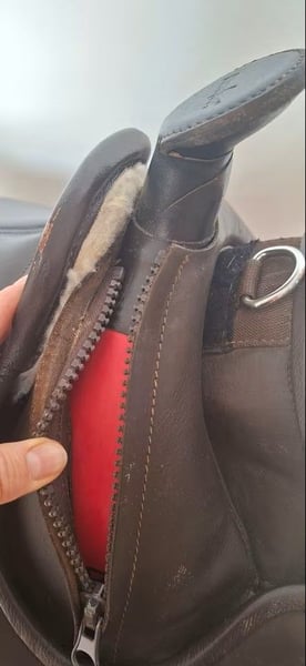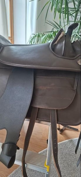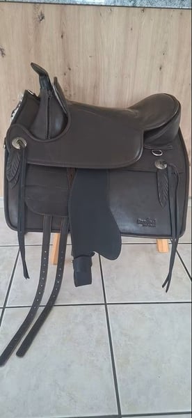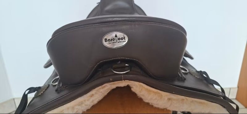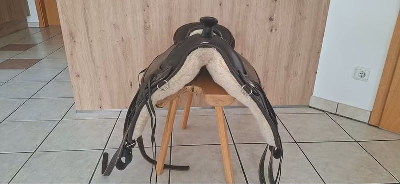 Hallo liebe Pferdefreunde, ich verkaufe meinen Barefoot (Modell Nevada) mit schmalen Fendern. Ich habe den Sattel im Februar 2025 bei einem Fachhändler als Testsattel gekauft. Er war dort ca. 15 Stunden bei Kunden zum Testen im Einsatz. Gerne lege ich Ihnen sämtliche Unterlagen vor, die dies bestätigen. Originalpreis 979,00 €, Fender 149,00 Euro. Leider war der baumlose Sattel nicht das Richtige für mich und meinen Kaltblutwallach, daher verkaufe ich ihn wieder. Ich hatte ihn im letzten Jahr nur einige Male auf dem Pferd, da mein Pferd in relativ kurzer Zeit an der Schulter breiter wurde. Selbst die XXL-Fork hätte nicht mehr gepasst. Ich hätte eine Soft-Fork nehmen müssen und zusätzlich am Widerrist aufpolstern müssen, was mir persönlich zu schwammig erschien. Verbaut ist die rote Fork / Größe L. Sie sehen auf den Fotos, dass der Sattel in sehr gutem Zustand ist. An den Rändern ist die Farbe an kleinen Stellen etwas ab. Versand bei Übernahme der Kosten möglich. Offizielle Beschreibung: Nevada ist ein pferdegerechter Westernsattel aus robustem, offenporigem Nubuk-Rindsleder mit schmutzabweisender Oberflächenbehandlung, der besonders anpassungsfähig an den Pferderücken und für den Reiter sehr bequem ist. Die eckigen Skirts bieten eine große Auflagefläche und Haftung. Somit ist der Nevada ideal für großrahmige, breite oder runde Pferde mit eher flachem Widerrist. Die Steigbügelaufhängung lässt sich zwischen Sitz und Sattel nach Reiterwunsch positionieren. So passt dieser Sattel sich Ihrem Sitz und Ihren Körpermaßen ganz einfach an. Der Sattel hat eine für Westernsättel untypische 2-Strippen-Gurtung - dadurch verbessert sich die Sattellage bei Pferden mit mehr Bauchumfang deutlich. 6 D-Ringe, Conchas und Lederbänder zum Befestigen von Sattelunterlagen oder Gepäck. Die Fork (wird in der Größe weit mitgeliefert) ist wie bei allen Barefoot-Sätteln austauschbar. kein Druck und damit keine Einschränkung des Muskulaturaufbaus mit VPS® System frei positionierbare Steigbügelaufhängung ideal für breite Pferde helle, dichte Webpelzunterseite Gewicht nur ca. 7 kg Farbe: braun Größe: uni (Größe liegt zwischen 1 und 2) Eine dazu passende Satteldecke hätte ich bei Bedarf auch noch zu verkaufen. Privatverkauf. Der Verkauf erfolgt unter Ausschluss jeglicher Sachmängelhaftung.