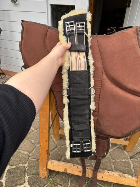 Biete hier einen selten genutzten Sattel der Marke Barefoot. Zum Sattel: - 2 unterschiedliche Polstereinlagen - geeignet für ältere Pferde - geeignet für schwerere Reiter oder sehr schlanke Reiter - rutschsichere Unterseite durch Sympanova - sehr guter Halt für Reiter - lässt feine Gewichtshilfen zu dazu ein echter Lammfell Gurt (Wert ca. 30€) Leichte Gebrauchsspuren sind auf den Bildern dargestellt. Neupreis des Sattels lag bei 250€ Abholung bevorzugt! (Optimal wäre Mittwochs zwischen 10-12) Da es sich um einen Privatkauf handelt, ist jegliche Garantie oder Rücknahme ausgeschlossen! Ein Versand erfolgt nur gegen Aufpreis und Vorkasse!